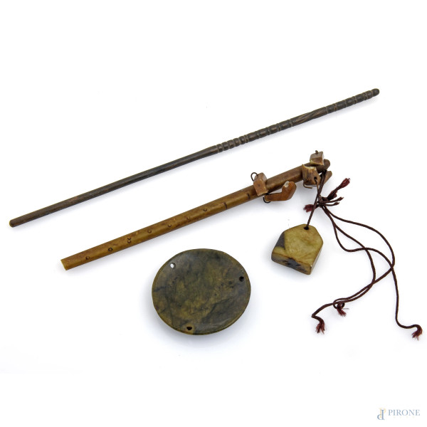 Coppia di bracciali etnici rigidi in metallo argentato e pietre dure, diametro cm 7