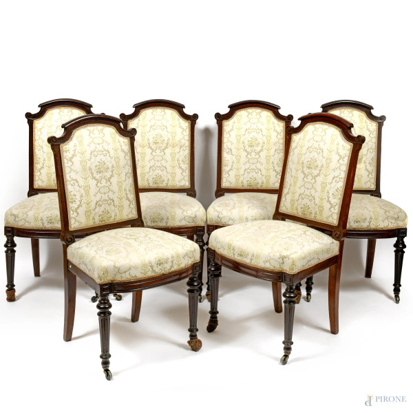 Coppia di lampade a cinque fuochi in metallo nero e oro, sec XX, cm 81x17x17. (Difetti)