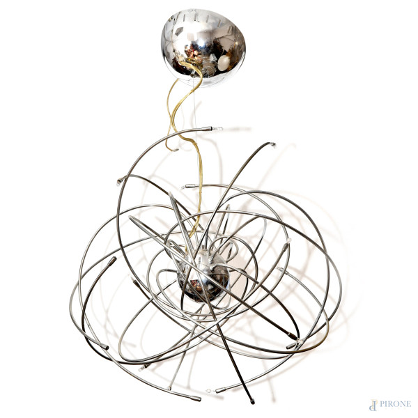 Coppia di lampade ad olio convertite in bronzo e vetri colorati, XX secolo, altezza cm 57 (da revisionare, segni di usura)