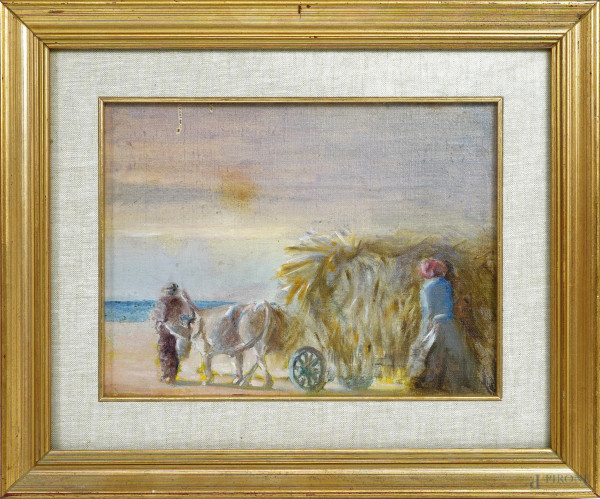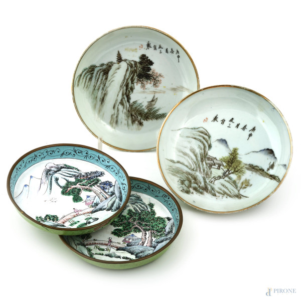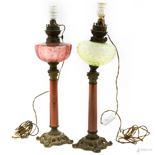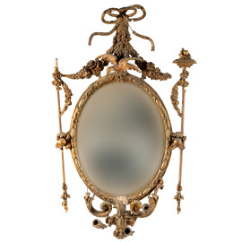 Coppia di specchiere ovali in legno e stucco dorato, XIX secolo, cm 116x62 (rotture, mancanze, difetti)