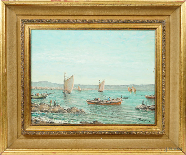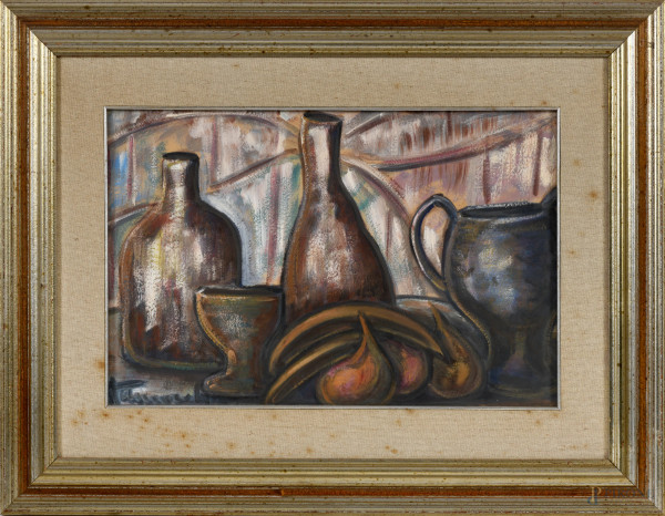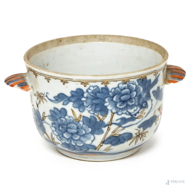 Formaggera in argento poggiante su quattro piedini con teste leonine, con cucchiaino a foggia di conchiglia, XIX-XX secolo, cm 8,5x16,5x11, gr. 270