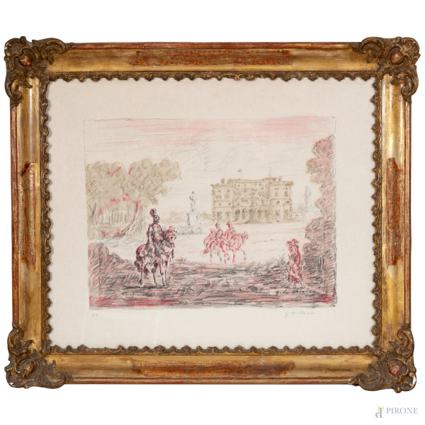 Giorgio De Chirico (1888-1978), Cavallo in corsa, litografia, cm 53,5x64 compreso passepartout, firmato in basso a destra, P.A., entro cornice