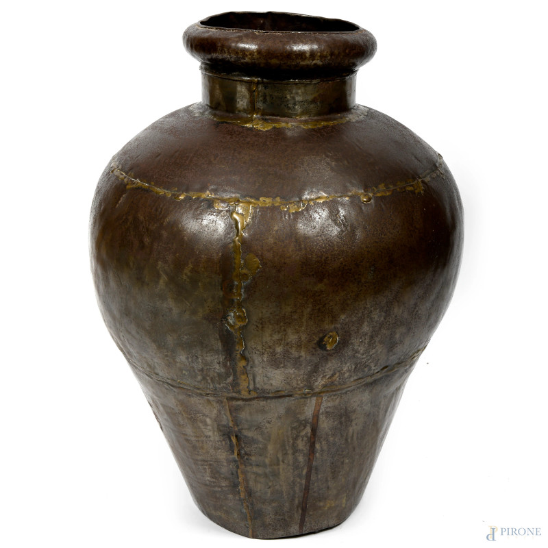 Grande vaso in metallo, XX secolo, altezza cm 71, (difetti)