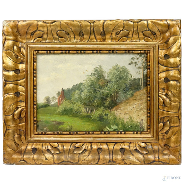 Gucci, cravatta da uomo in seta nei toni del blu e del verde, (segni di utilizzo).