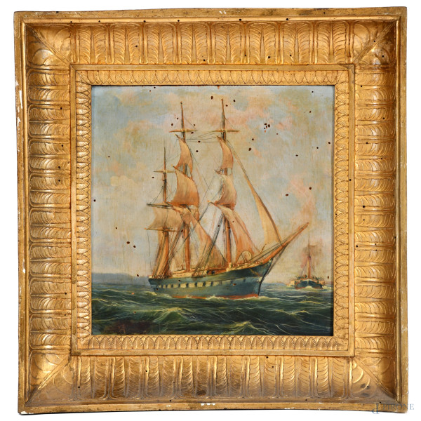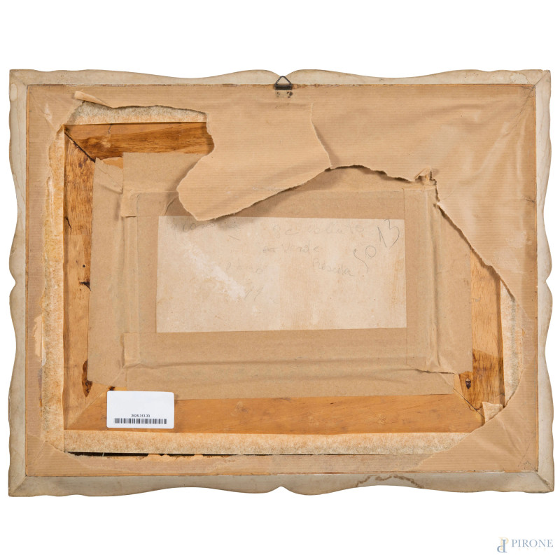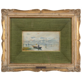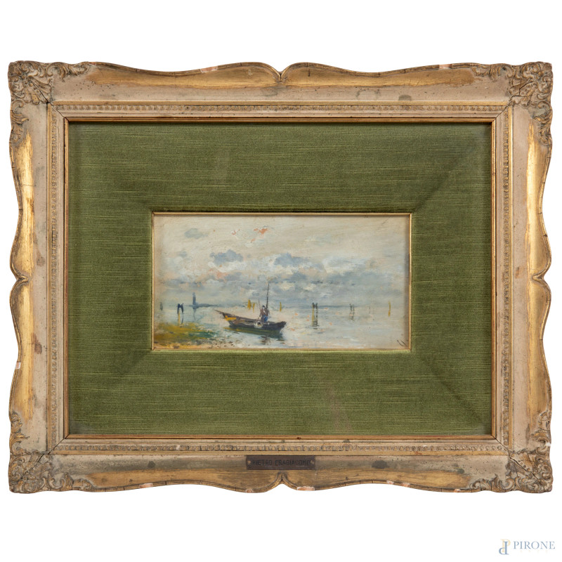 In laguna, XIX-XX secolo, olio su tavoletta, cm 13x23, entro cornice