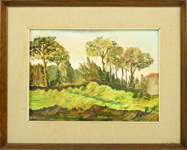 Interno di Chiesa, sec. XIX, olio su tela applicata su tela, cm 42,5x33,5