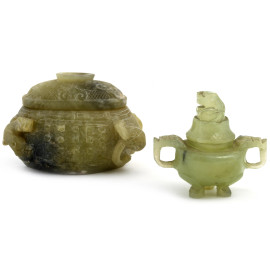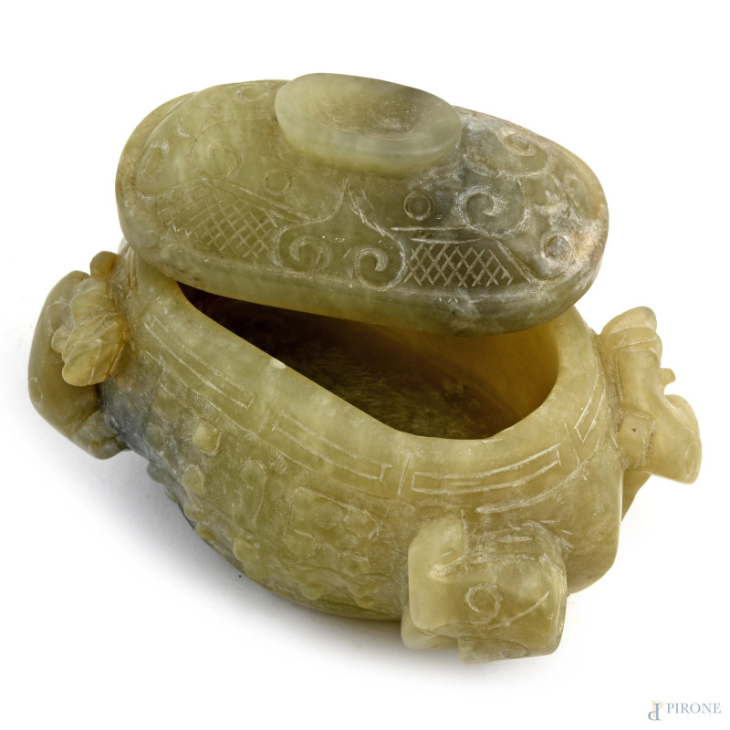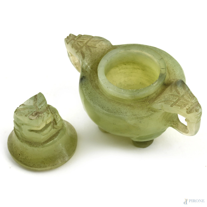 Lotto composto da piccola potiche e scatolina in giadeite, XX secolo, altezza massima cm 7, (scalfiture, graffi, segni di usura)