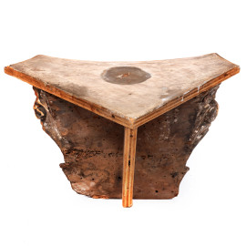 Mensola in legno intagliato e dorato, XX secolo, cm 27x49x37, (segni di usura, scalfiture, rotture, restauri, mancanze)
