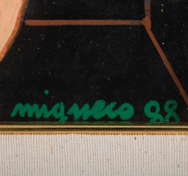 Giuseppe Migneco, Nudo di donna, olio su tavola, cm 29,5x23,5 entro cornice, firmato e datato 88 in basso a destra