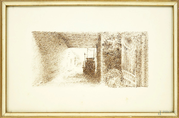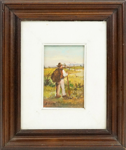 Paesaggio con case, olio su tela, XX secolo, cm 30x35 (difetti)