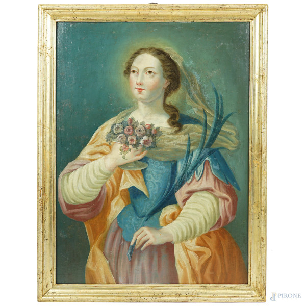 Paesaggio con figure e armenti, olio su tela, XVIII secolo, cm 70x108 entro cornice, (difetti)
