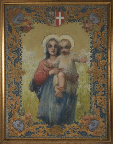 Pietro Annigoni(1910-1988) Figure, pastello grasso su carta, cm 39,5x57,5 dedicato, firmato e datato in numeri romani 1977, entro cornice
