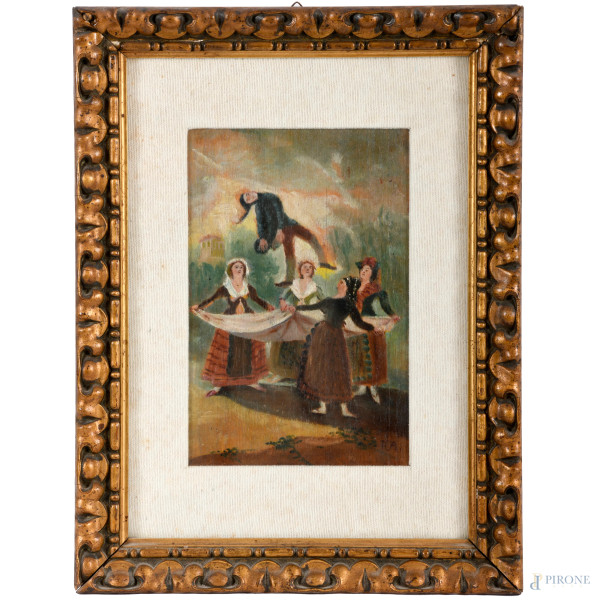 Aia lombarda, olio su tela, cm 35x50, firmato, entro cornice