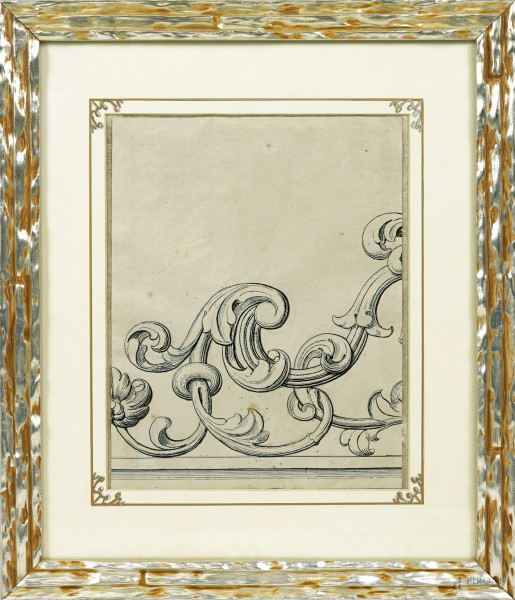 Servantina impiallacciata e intarsiata in varie essenze con sportello centrale afffiancato da coppia di sportelli convessi a vetrina, medaglione centrale in ceramica con scorcio di paesaggio e inserti bronzei. XX secolo, cm 104x150x36,5, (graffi, scalfiture, difetti)