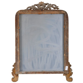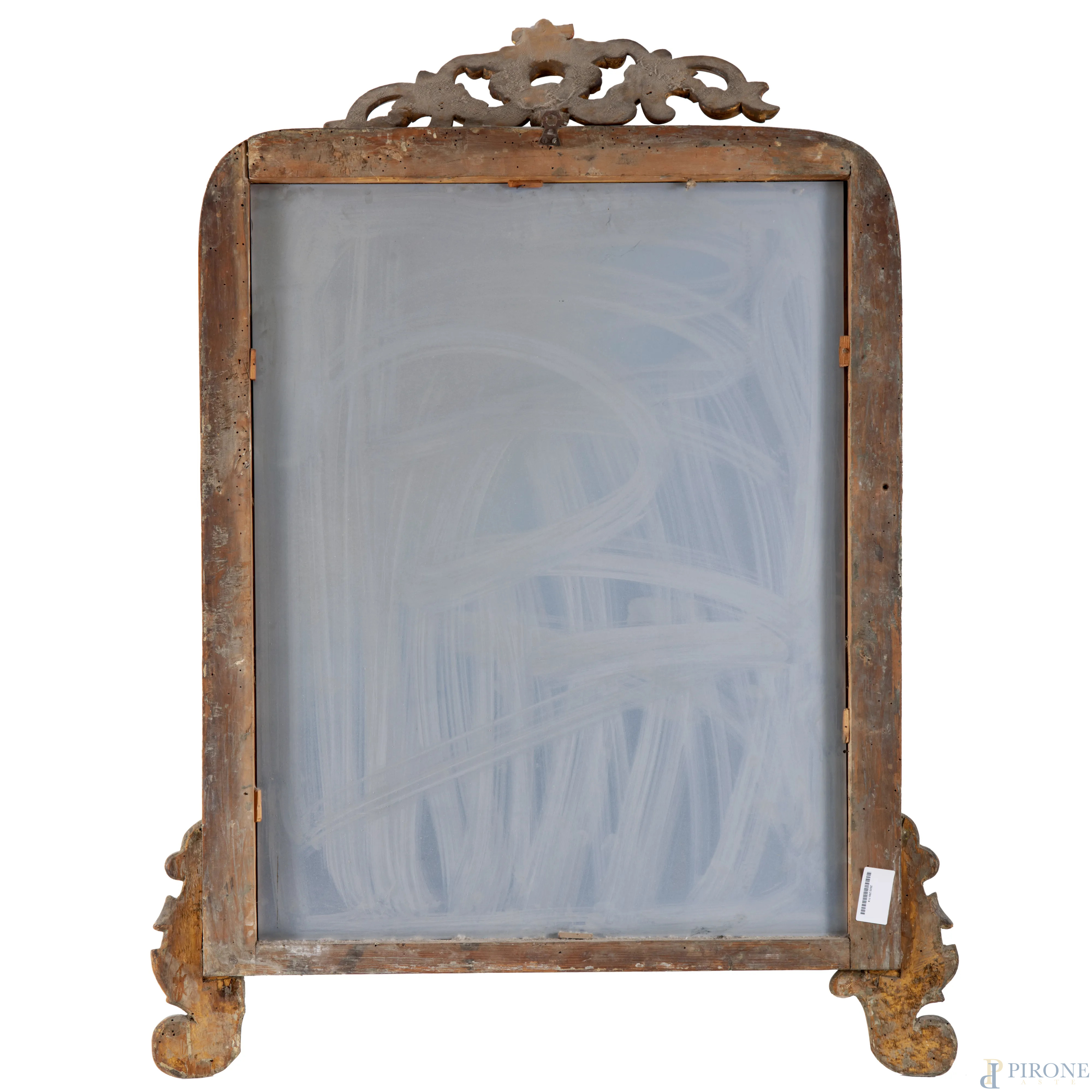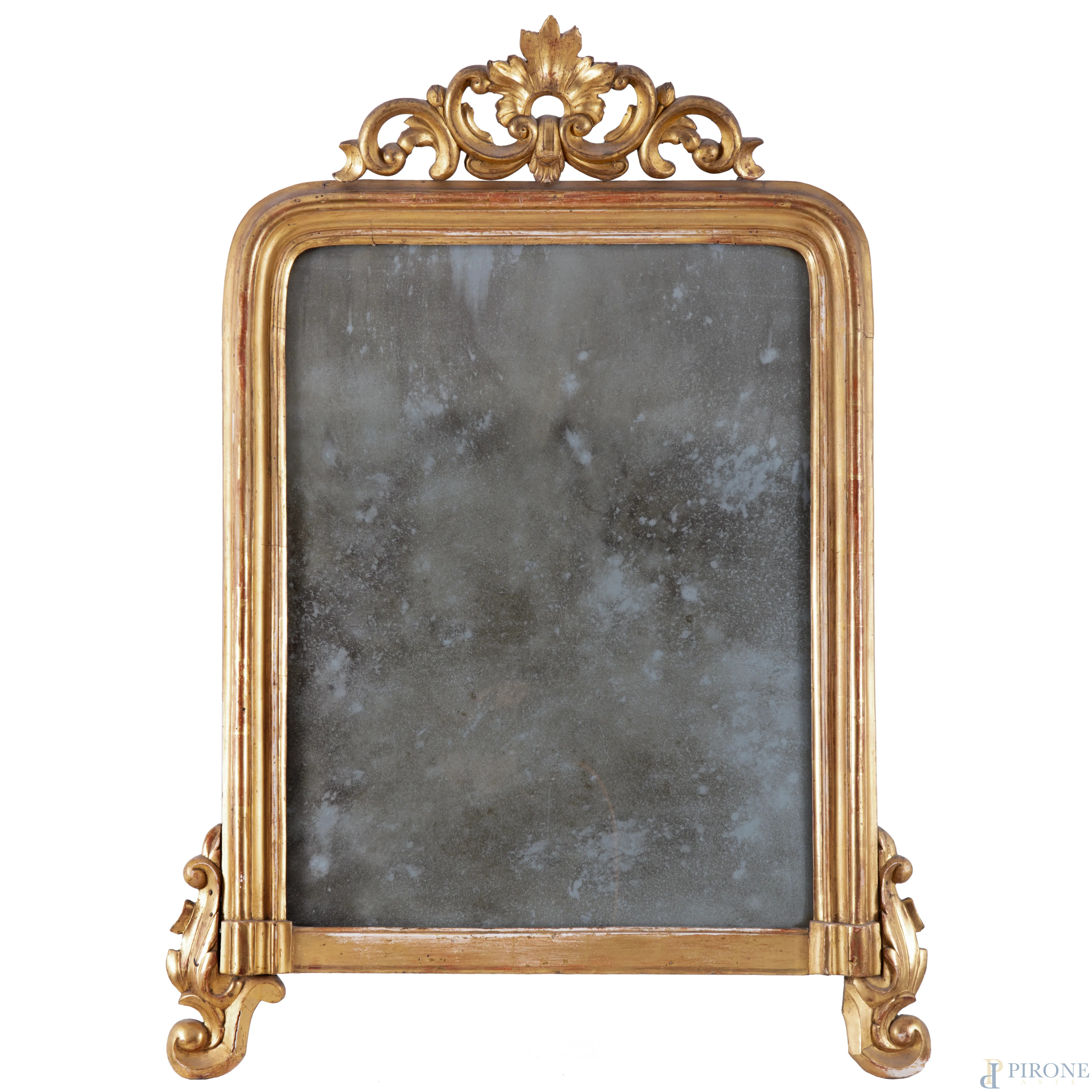 Specchiera in legno intagliato e dorato, XIX-XX secolo, cm 113x72, (cadute di doratura, scalfiture, fori di tarlo)