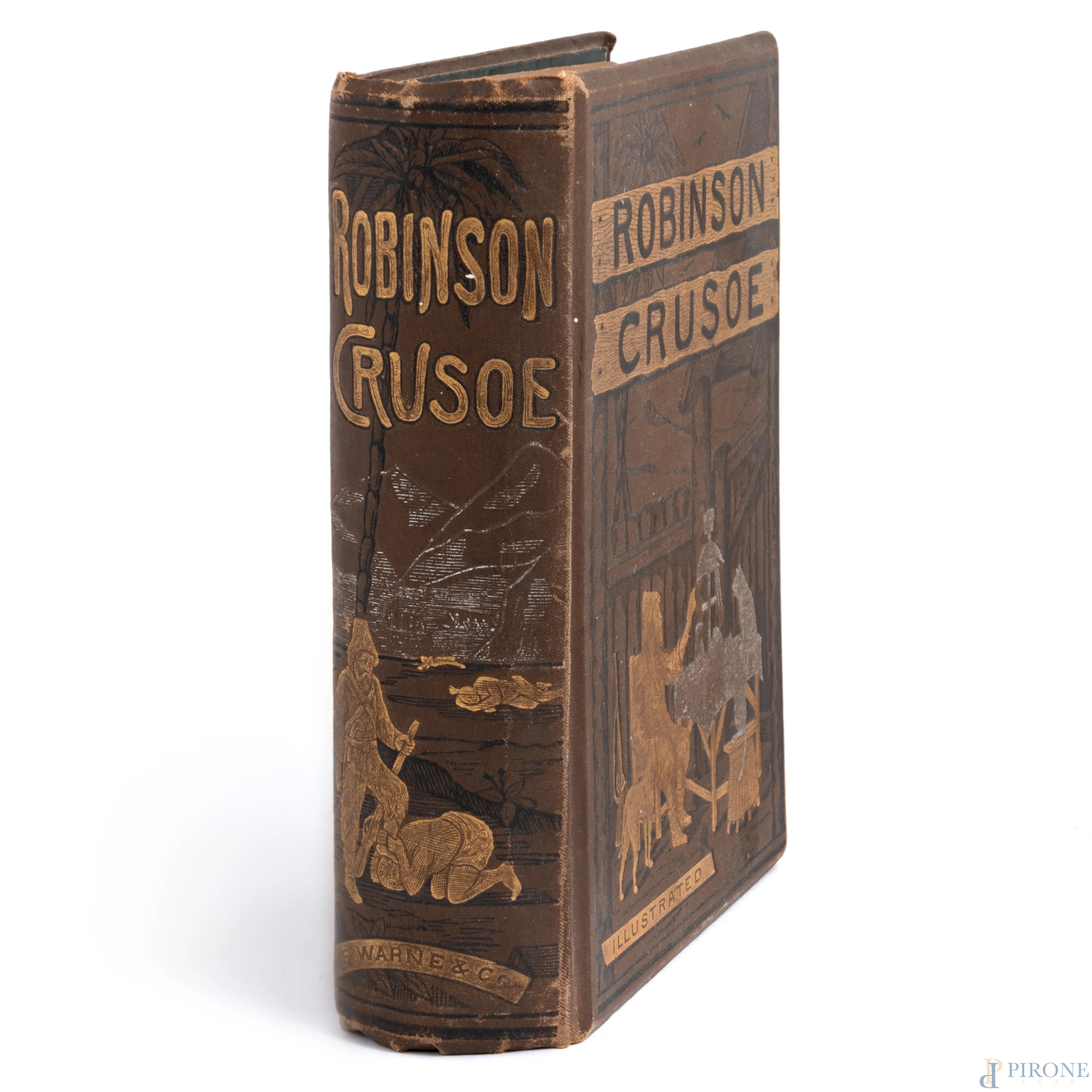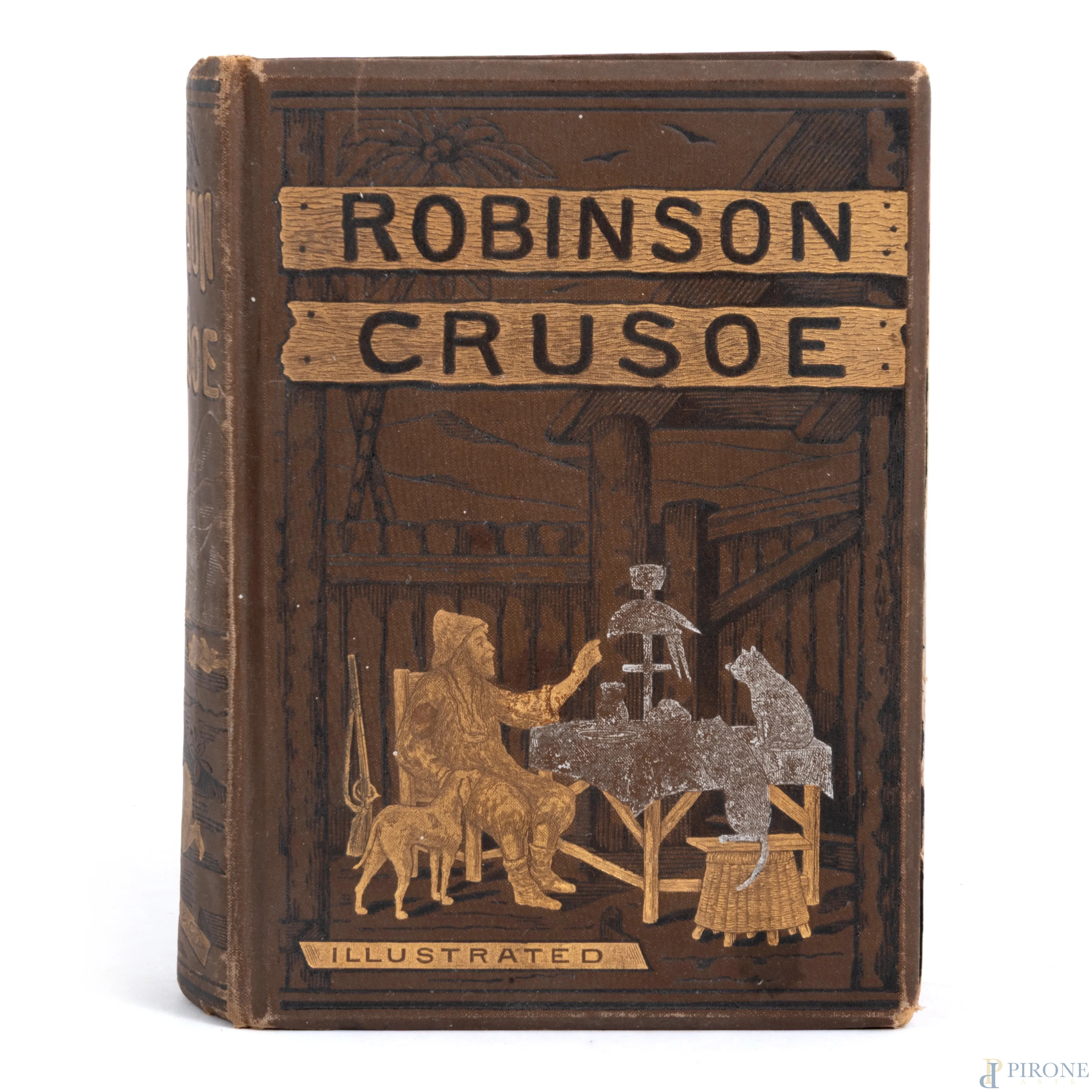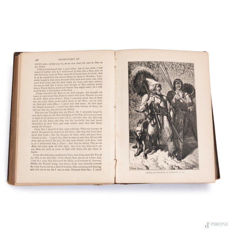 The Life and Adventures of Robin Crusoe, dedica datata 1889 all'interno, (difetti, usura, segni di umidità)