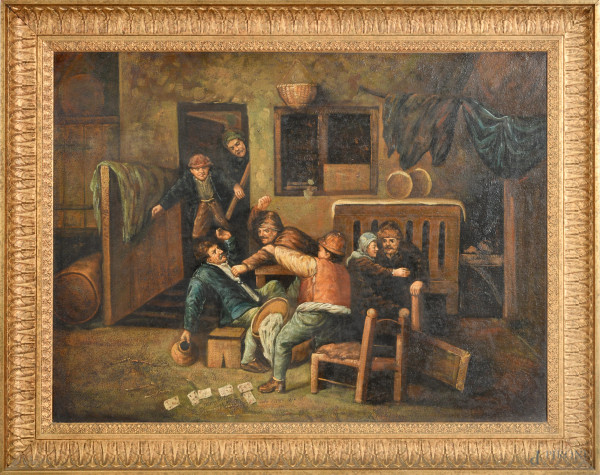 Ugo Attardi (1923-2006), Tevere, XX secolo, olio su tela, cm 50x70, entro cornice, firmato al fronte e al retro, (lievi sollevamenti di colore)
