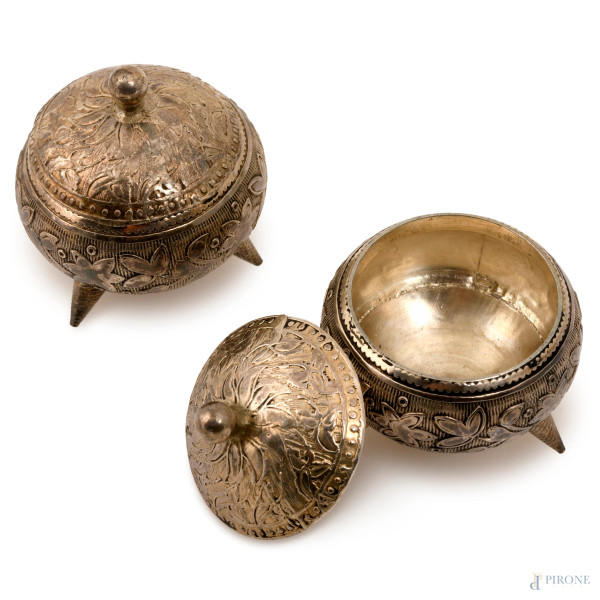 Victor Cerrato, coppia di vasi in ceramica policroma rossa e nera, alt. Cm 28, diam. apertura cm 29. (Difetti e mancanze)
