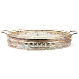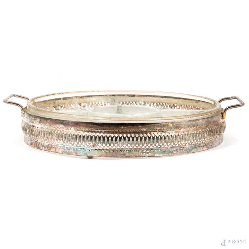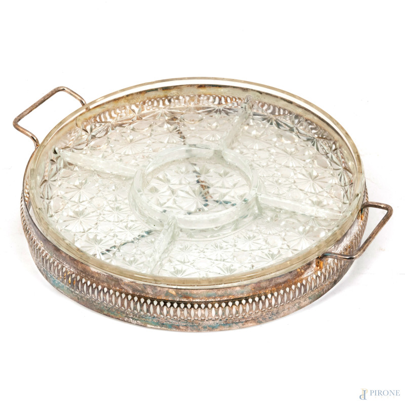 Antipastiera circolare in metallo e cristallo, XX secolo, cm 6x29, (segni di usura)