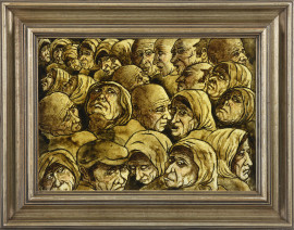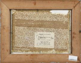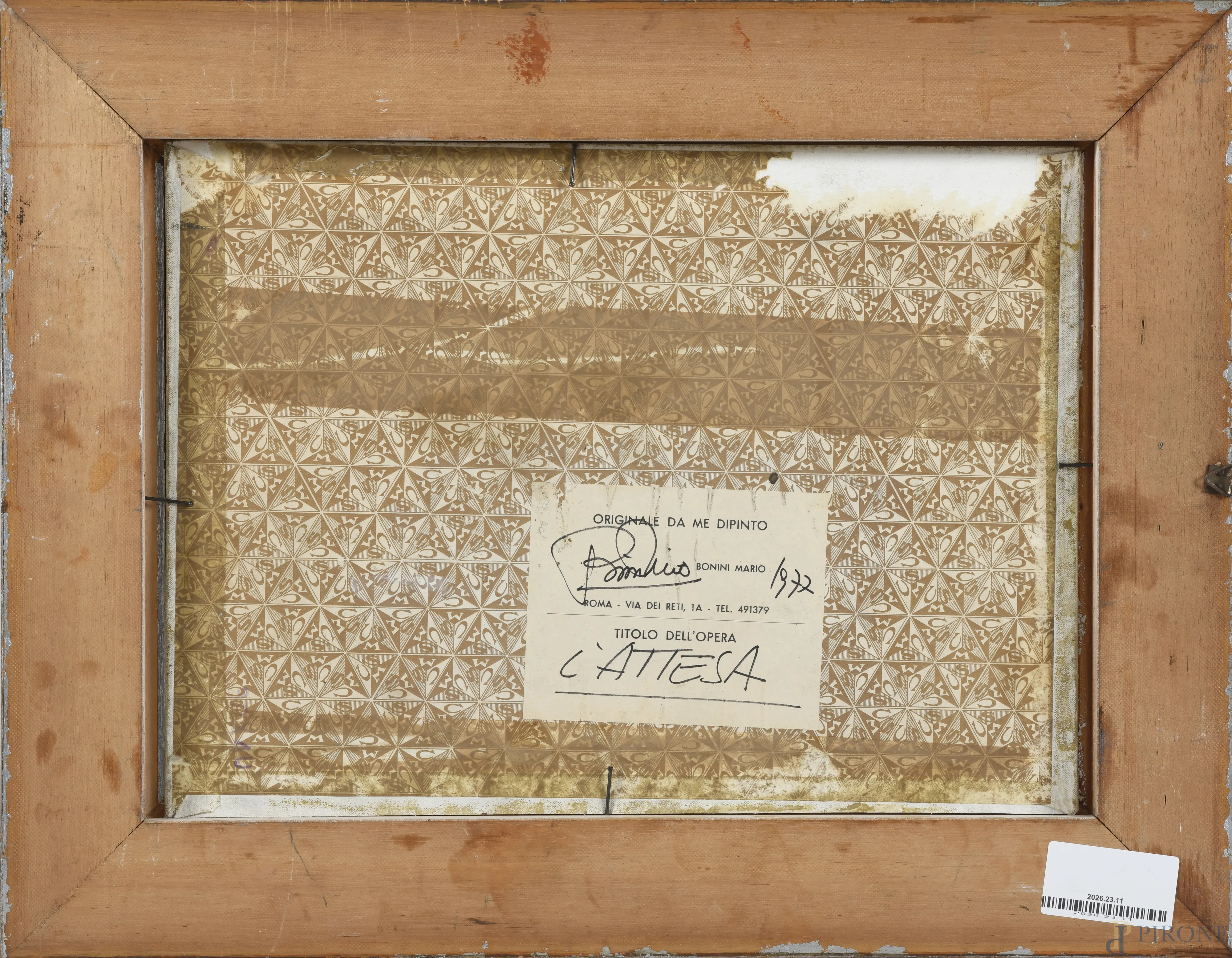 Bonini Mario, L'Attesa, olio su tela applicata su cartone, cm 29,5x39,5, firmato, titolato e datato 1977 dall'artista la retro, entro cornice