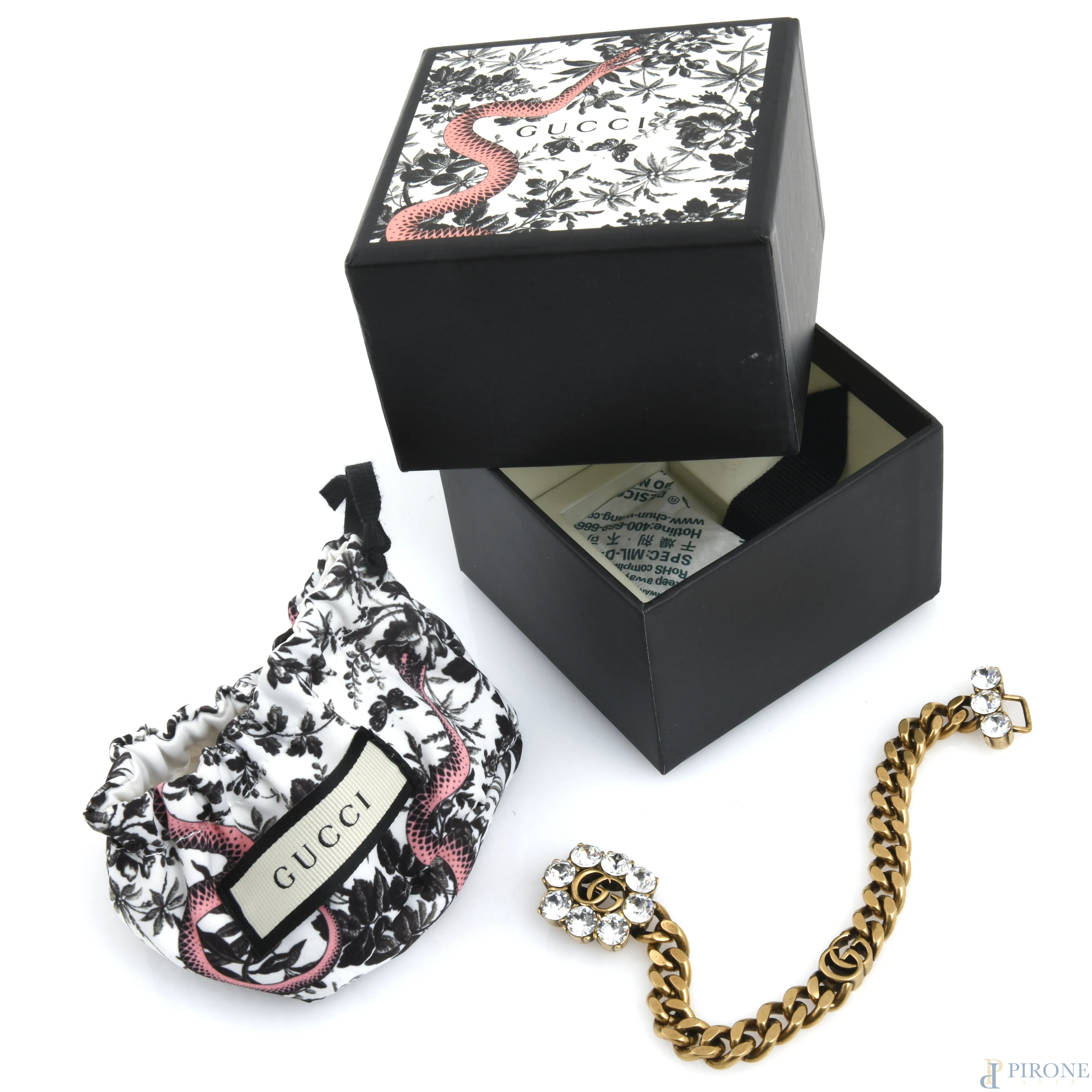 Bracciale Gucci in metallo dorato, lunghezza cm 17, (segni di usura, graffi)