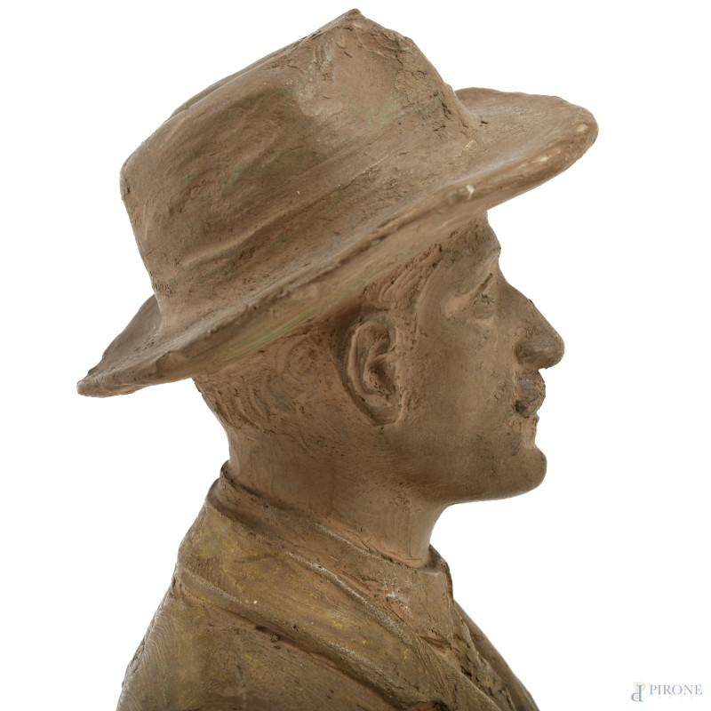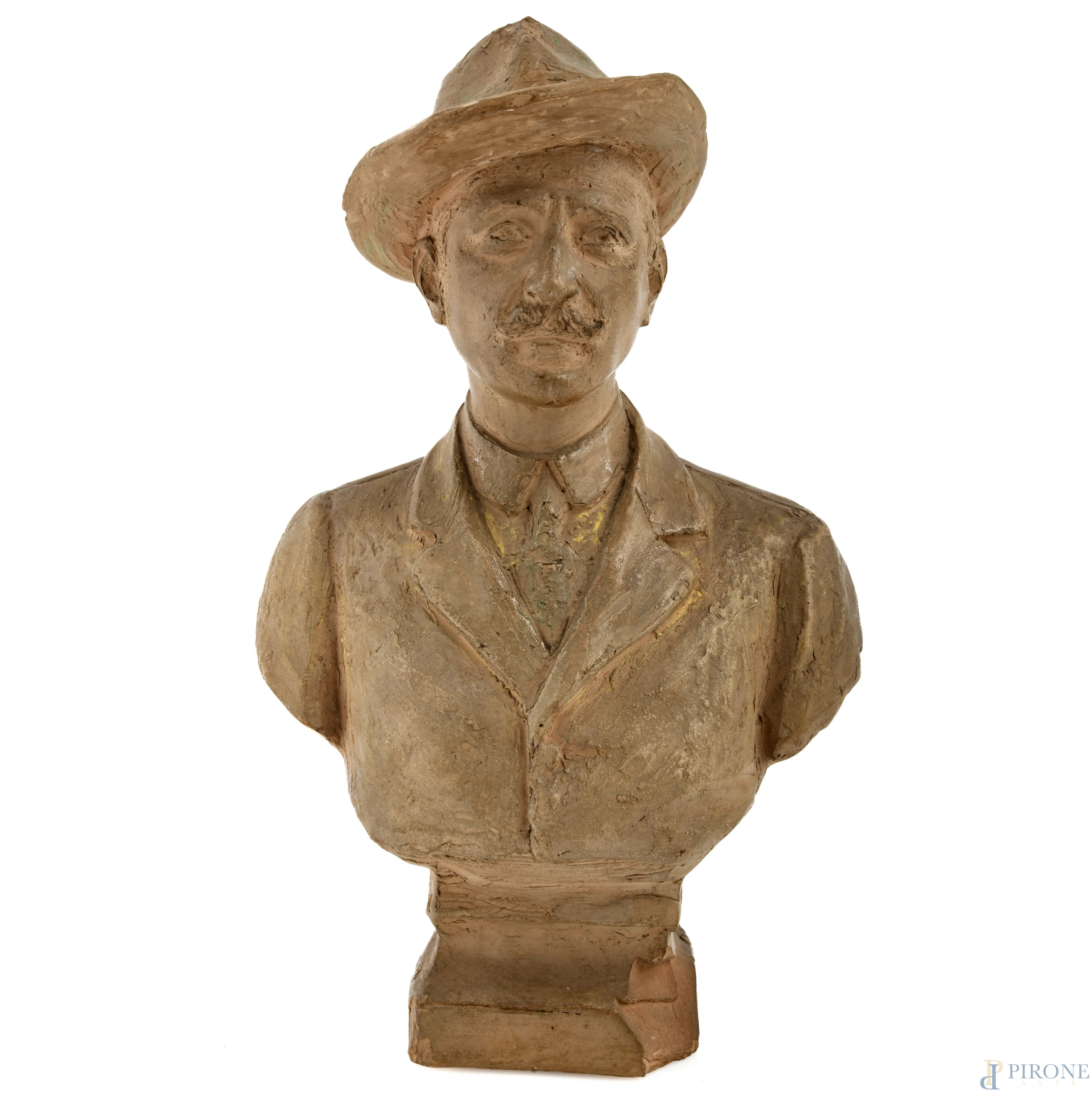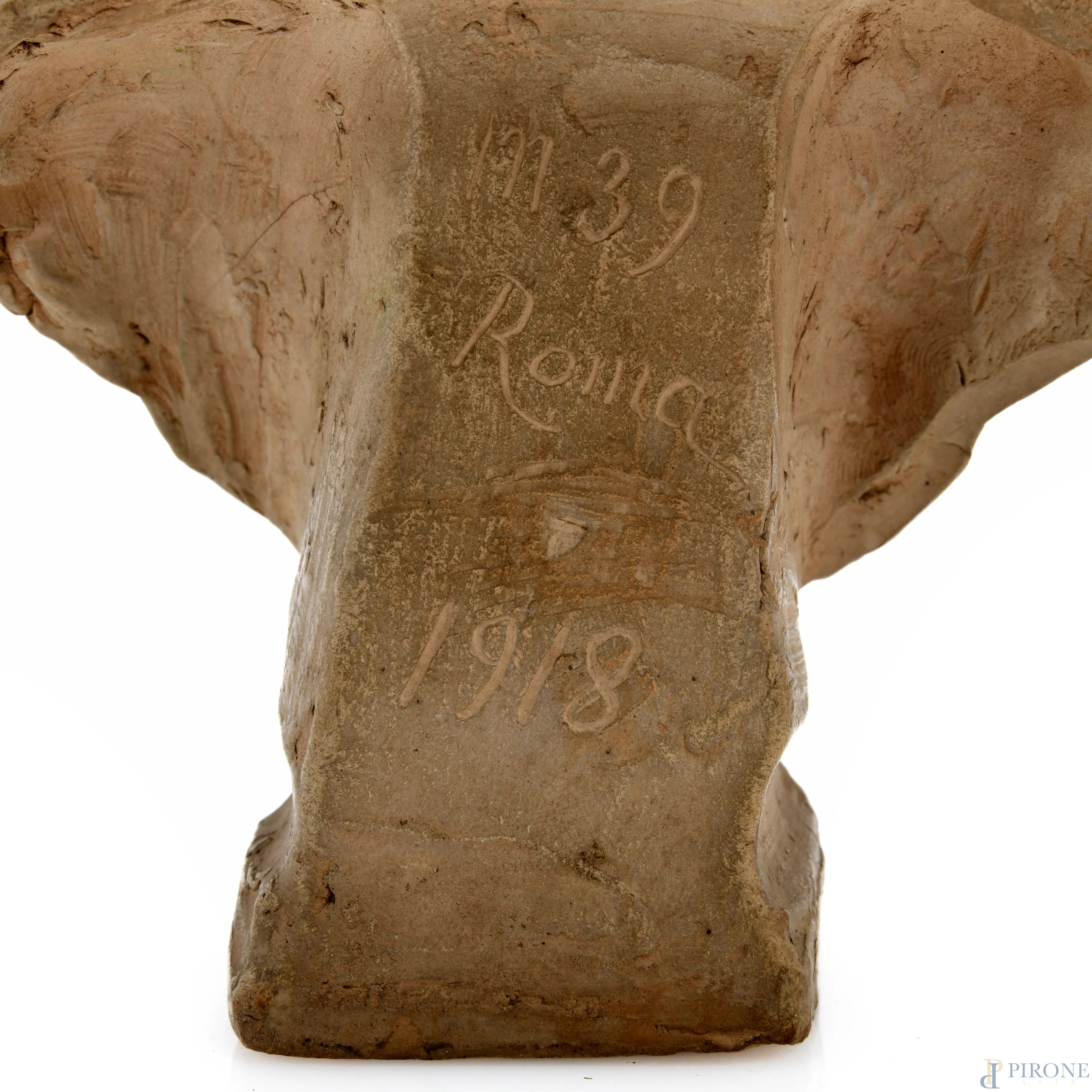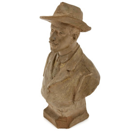Busto raffigurante Trilussa in terracotta, altezza cm 18,5, inciso al retro "III 39" e datato "Roma, 1918"