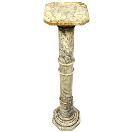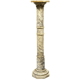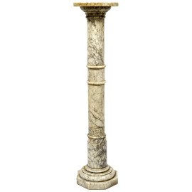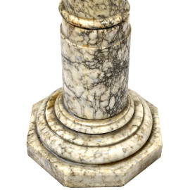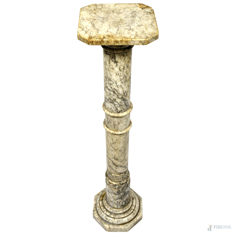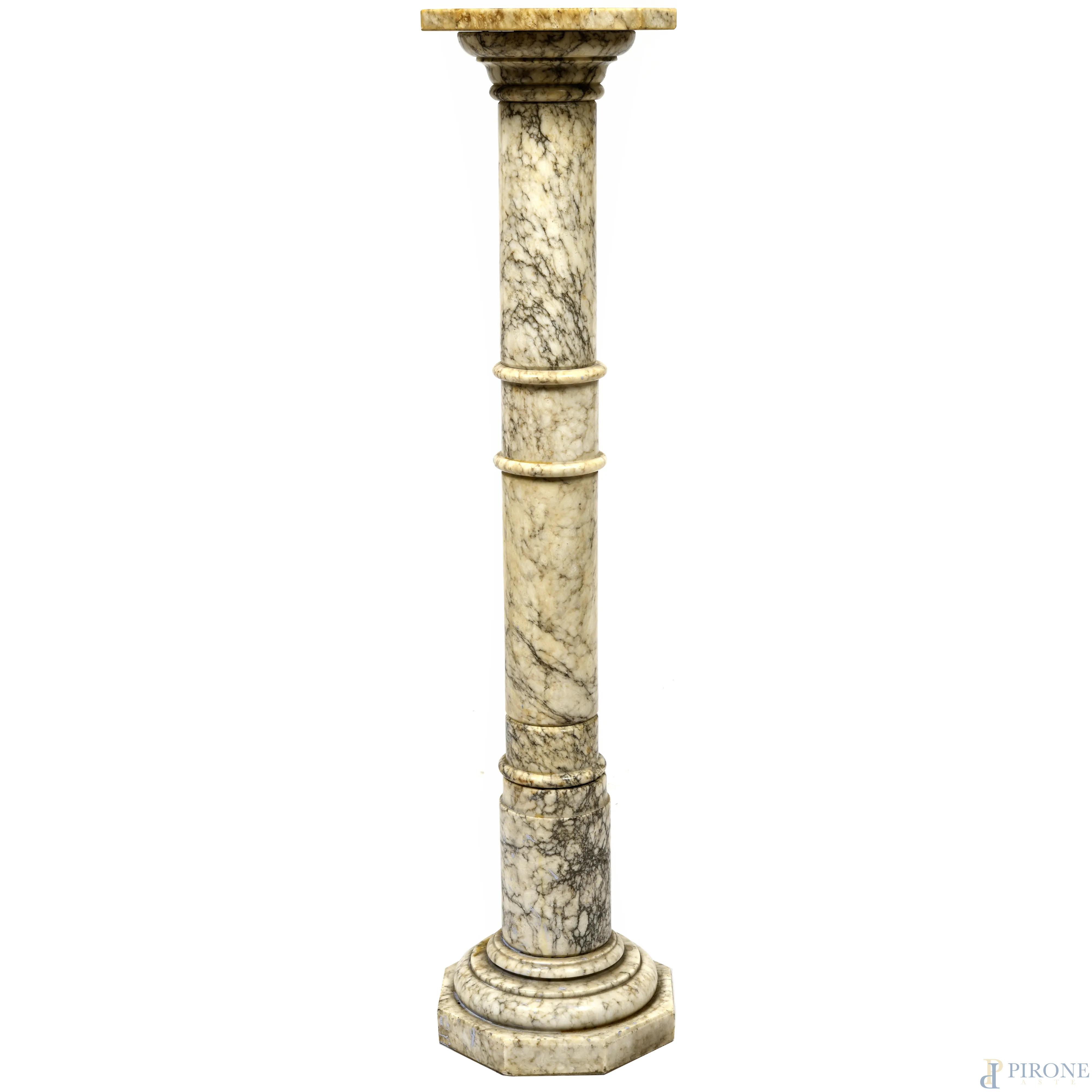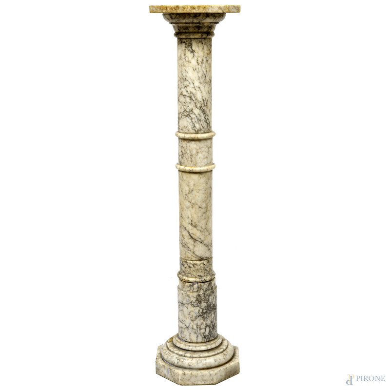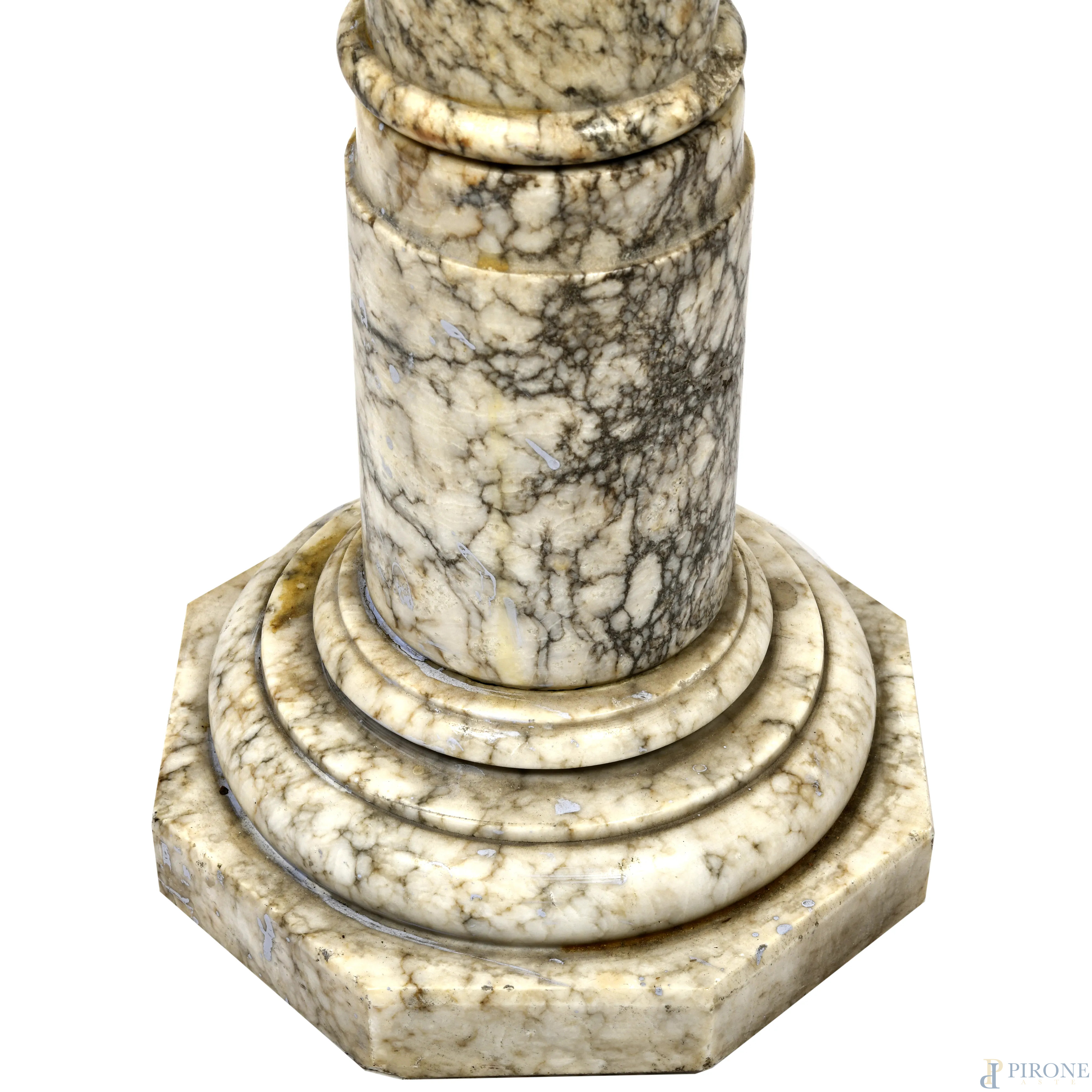 Colonna in marmo bianco venato dal fusto tornito con base XX secolo, altezza cm 98,5, (scalfiture, rotture, difetti)