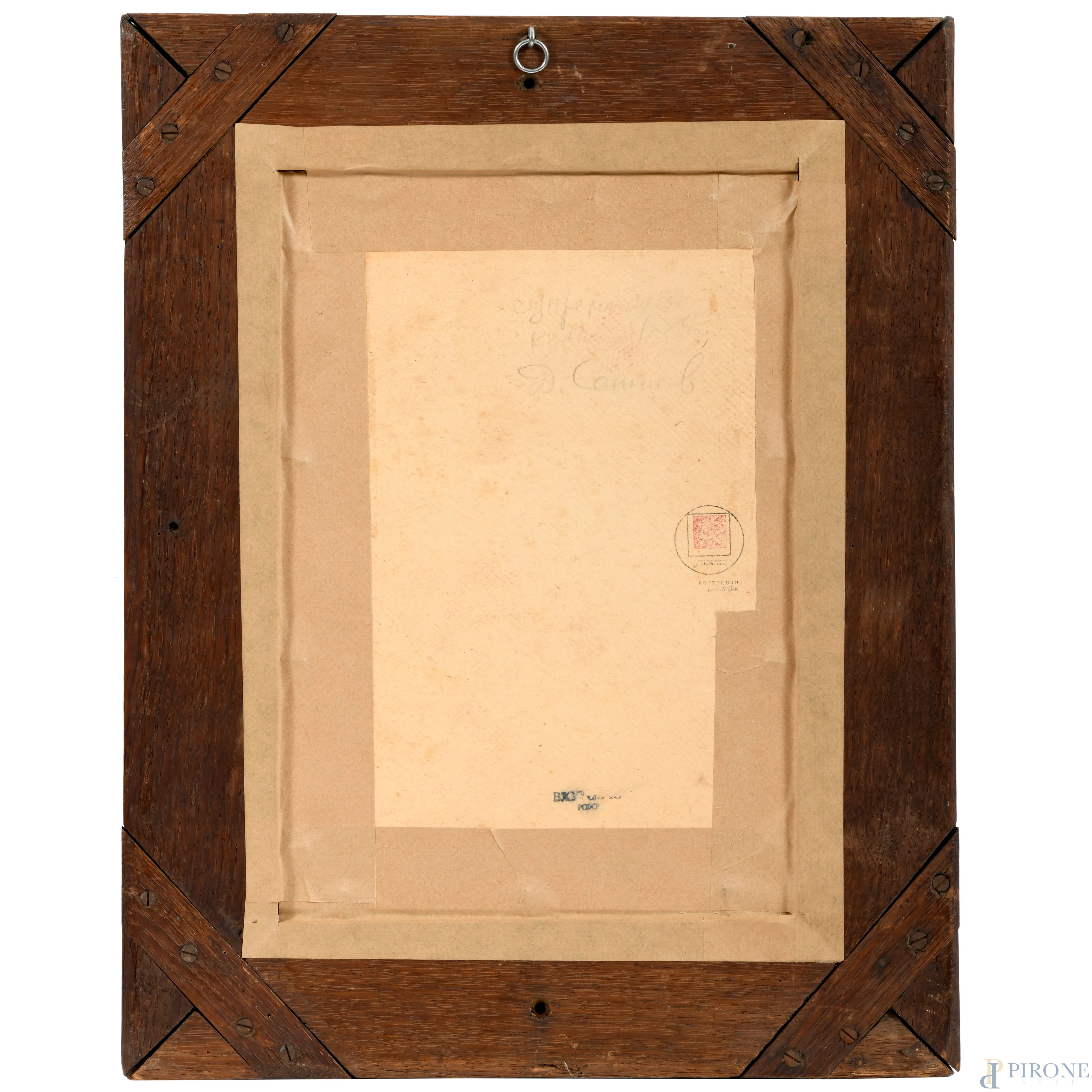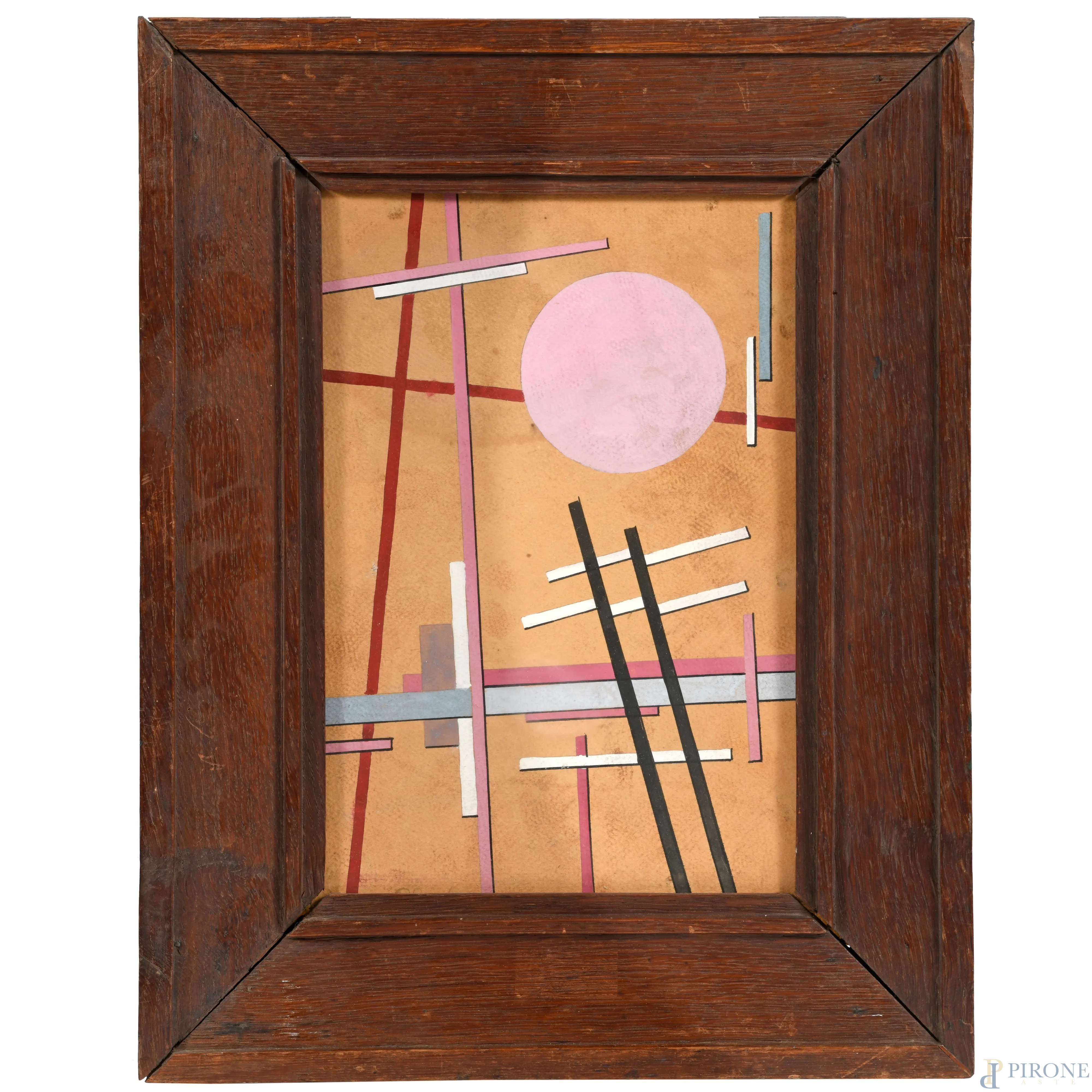 Composizione suprematista, XX secolo, tecnica mista su carta, cm 28x19, entro cornice (ondulazioni della carta e tracce di umidità)