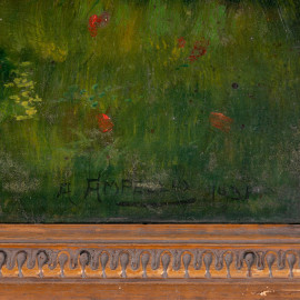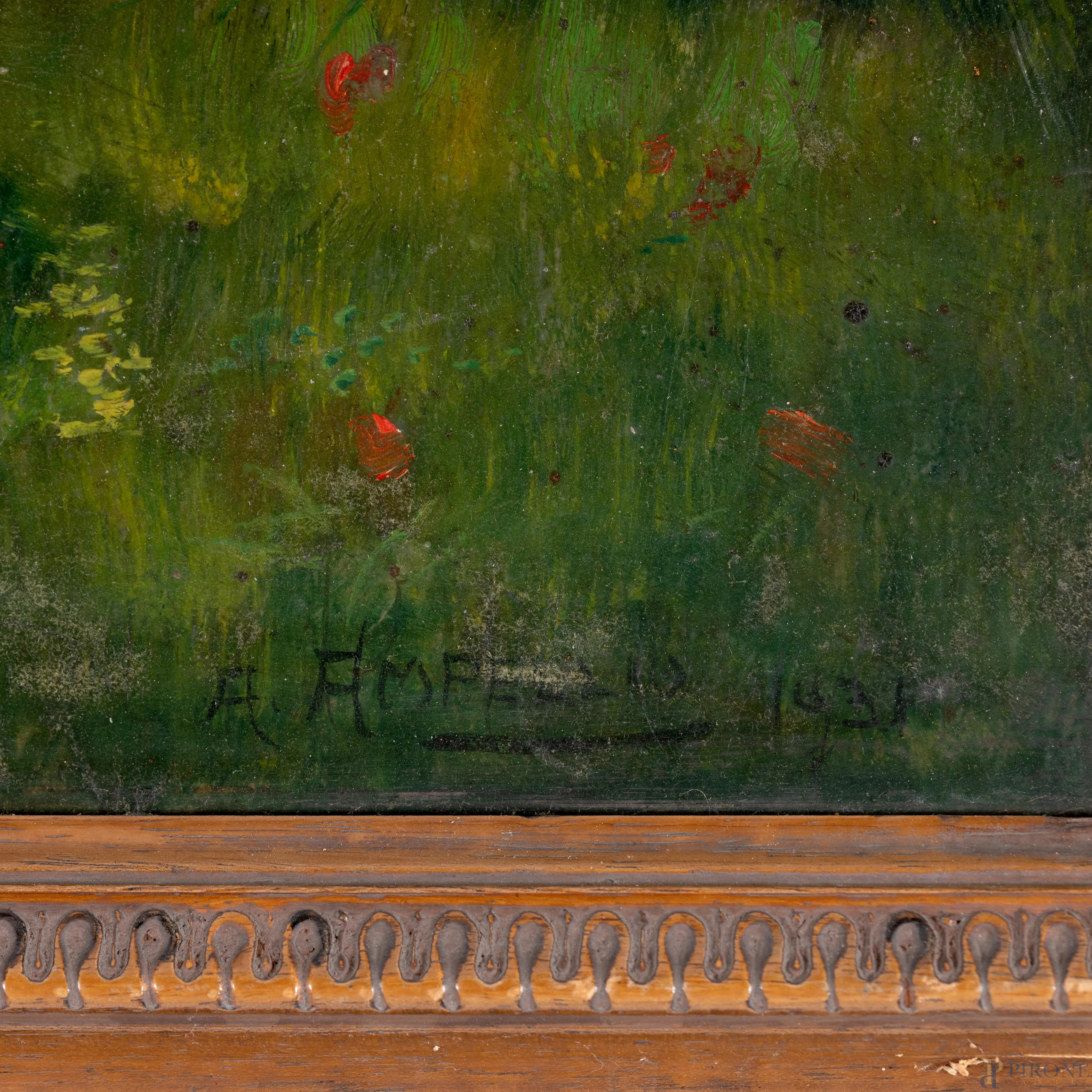 Copia da Enrico Barterzago, Prealpi bergamasche, XX secolo, olio su compensato, cm 48,5x70, firmato e datato "1931" in basso a destra, titolato in alto a sinistra, entro cornice, (segni di usura)