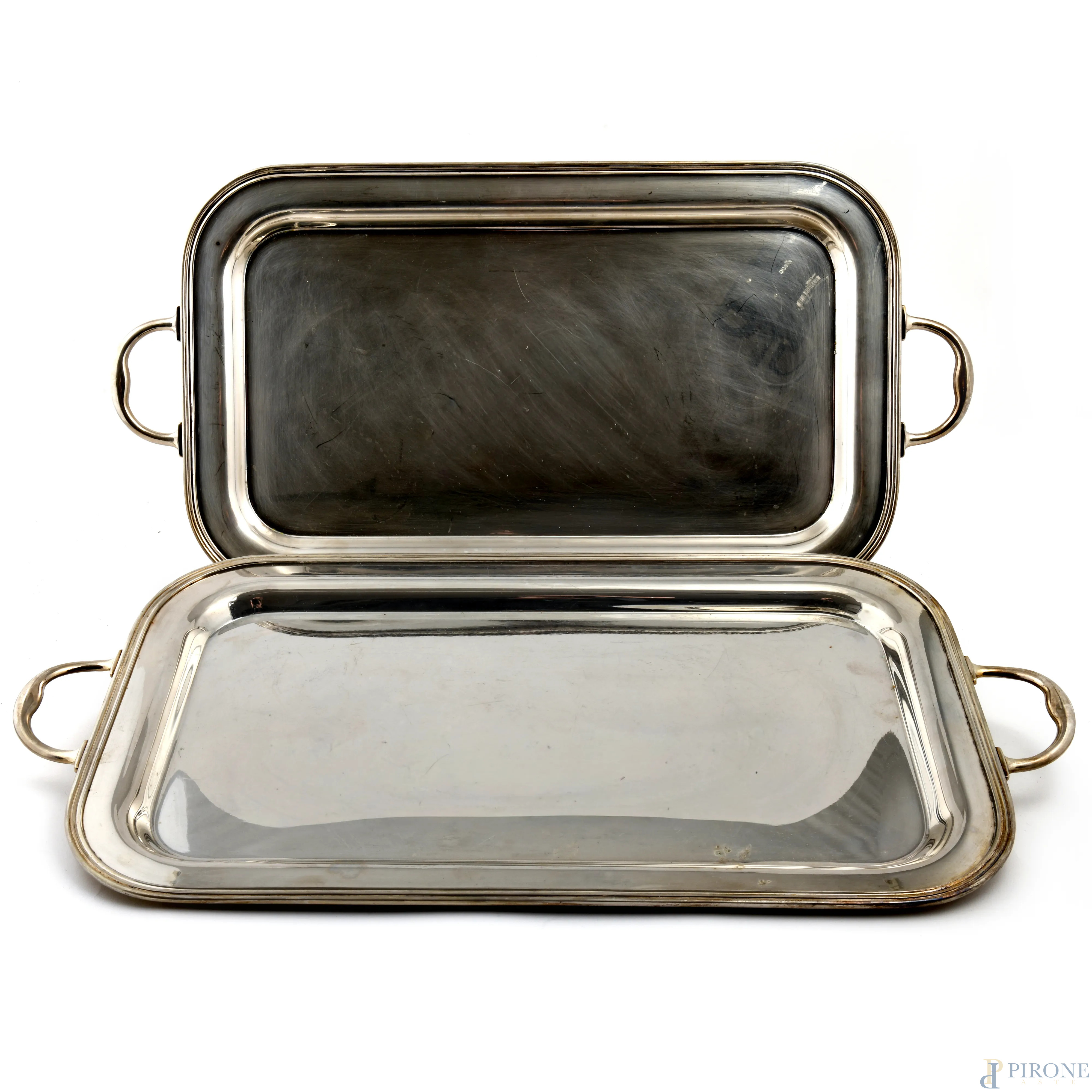 Coppia di vassoi in metallo, cm 62,5x31,5
