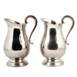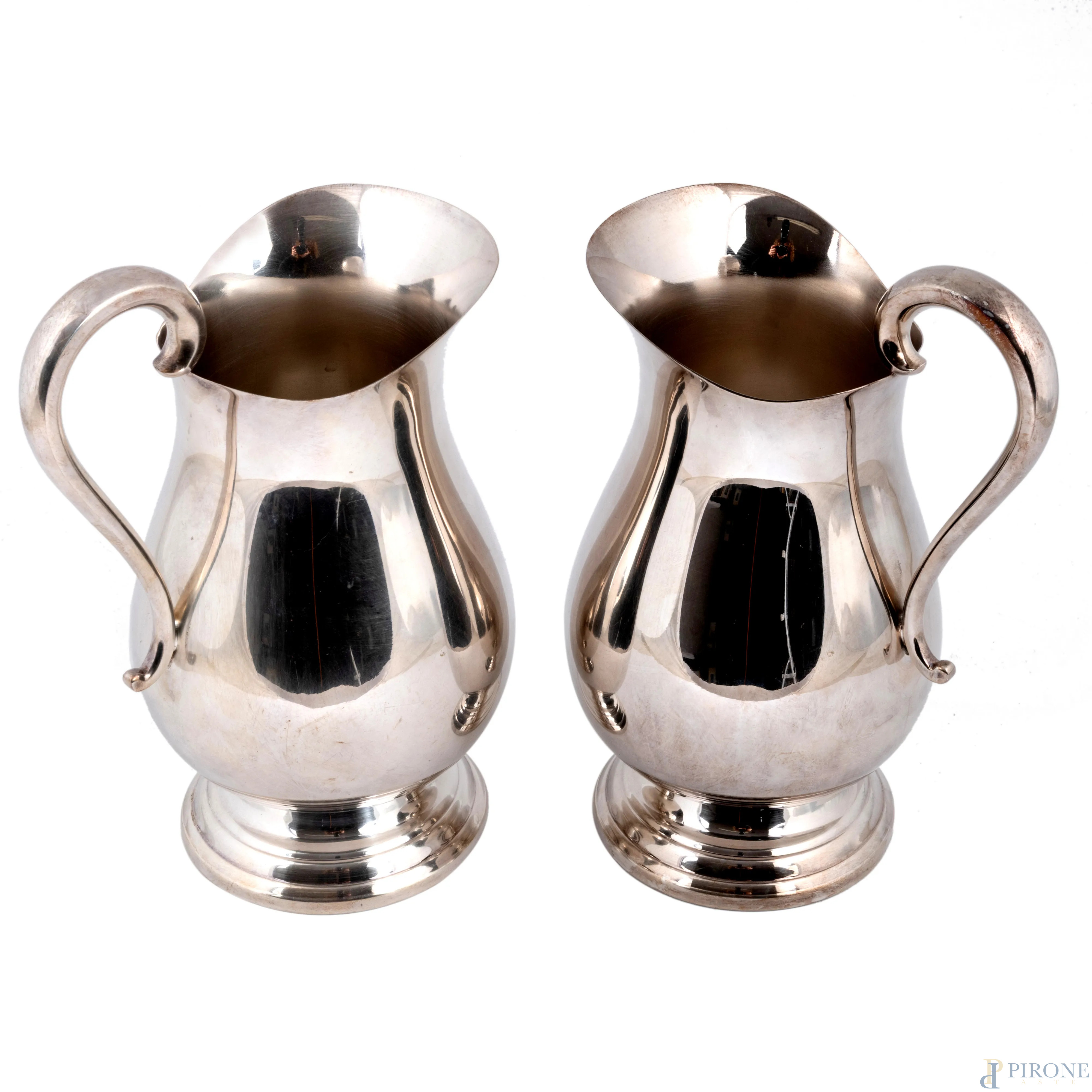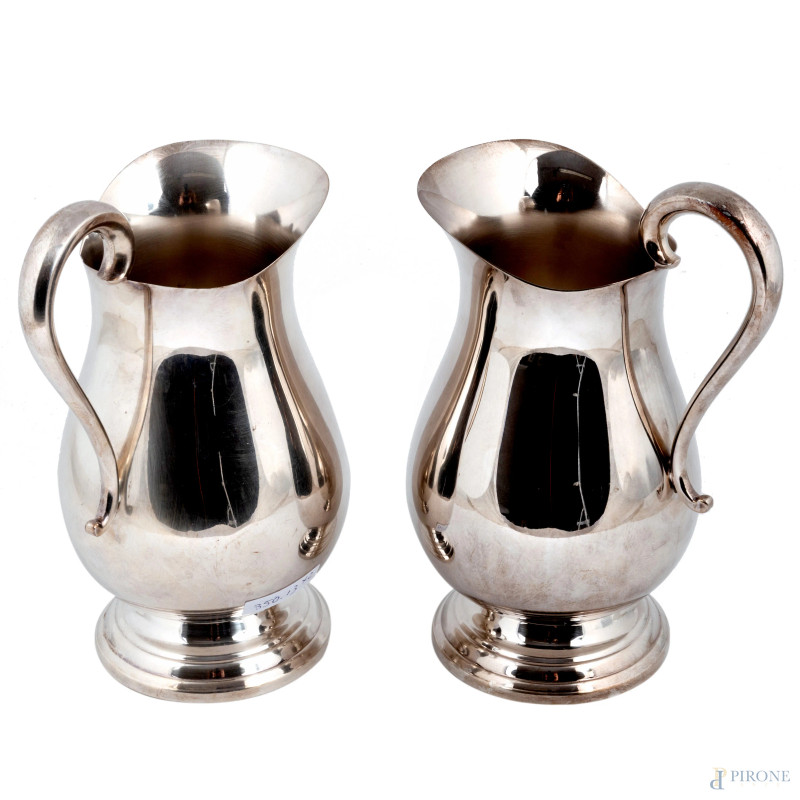 Coppia di versatoi in silverplate Calegaro, XX secolo, altezza cm 23