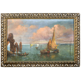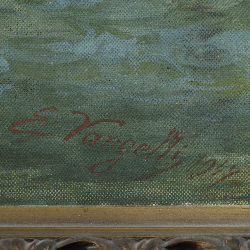 Emidio Vangelli (1871-1949), In barca, olio su tela, cm 100x63, firmato e datato "1947" in basso a destra, entro cornice