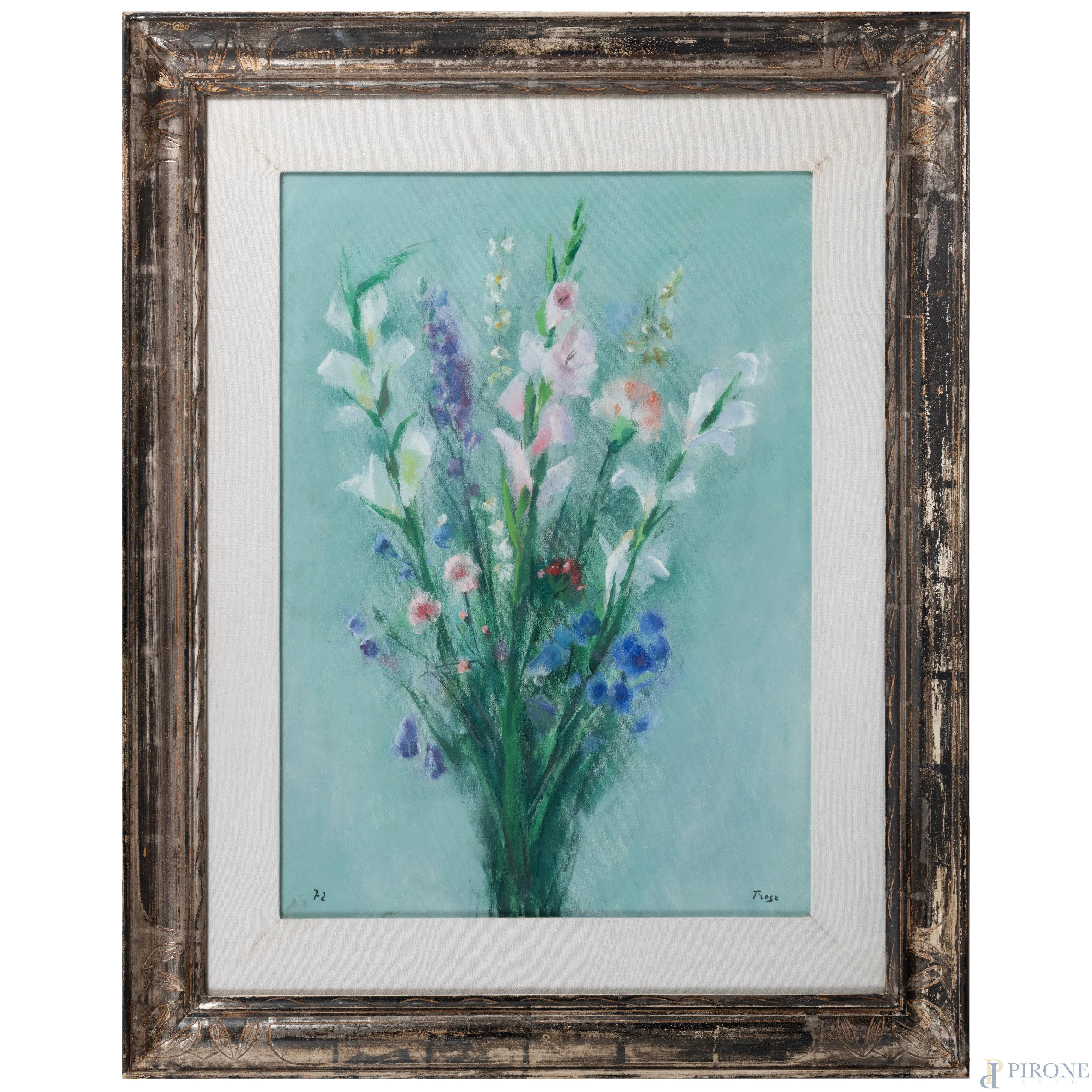 Fernando Troso (1910 – 1990), Mazzo di fiori, olio su tela, cm 70x50, firmato in basso a destra, datato "72" in basso a sinistra, entro cornice