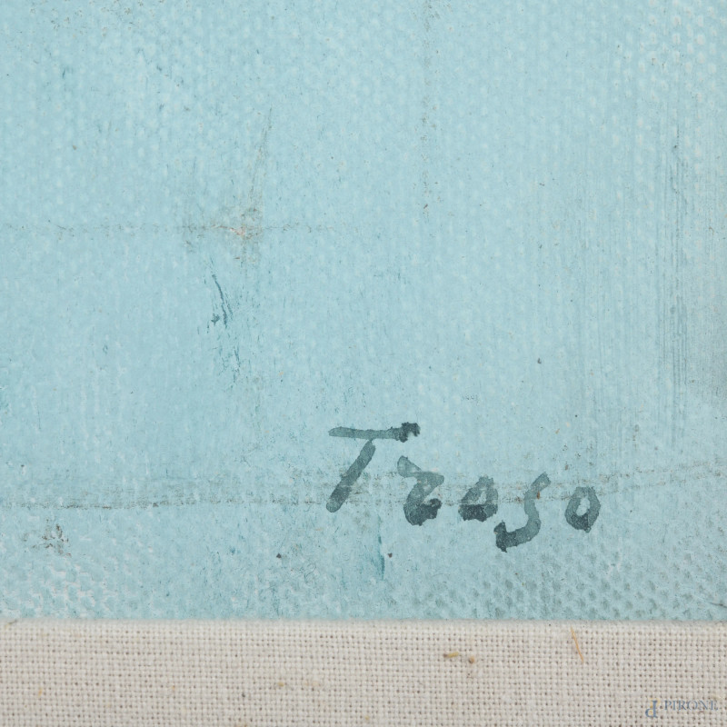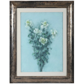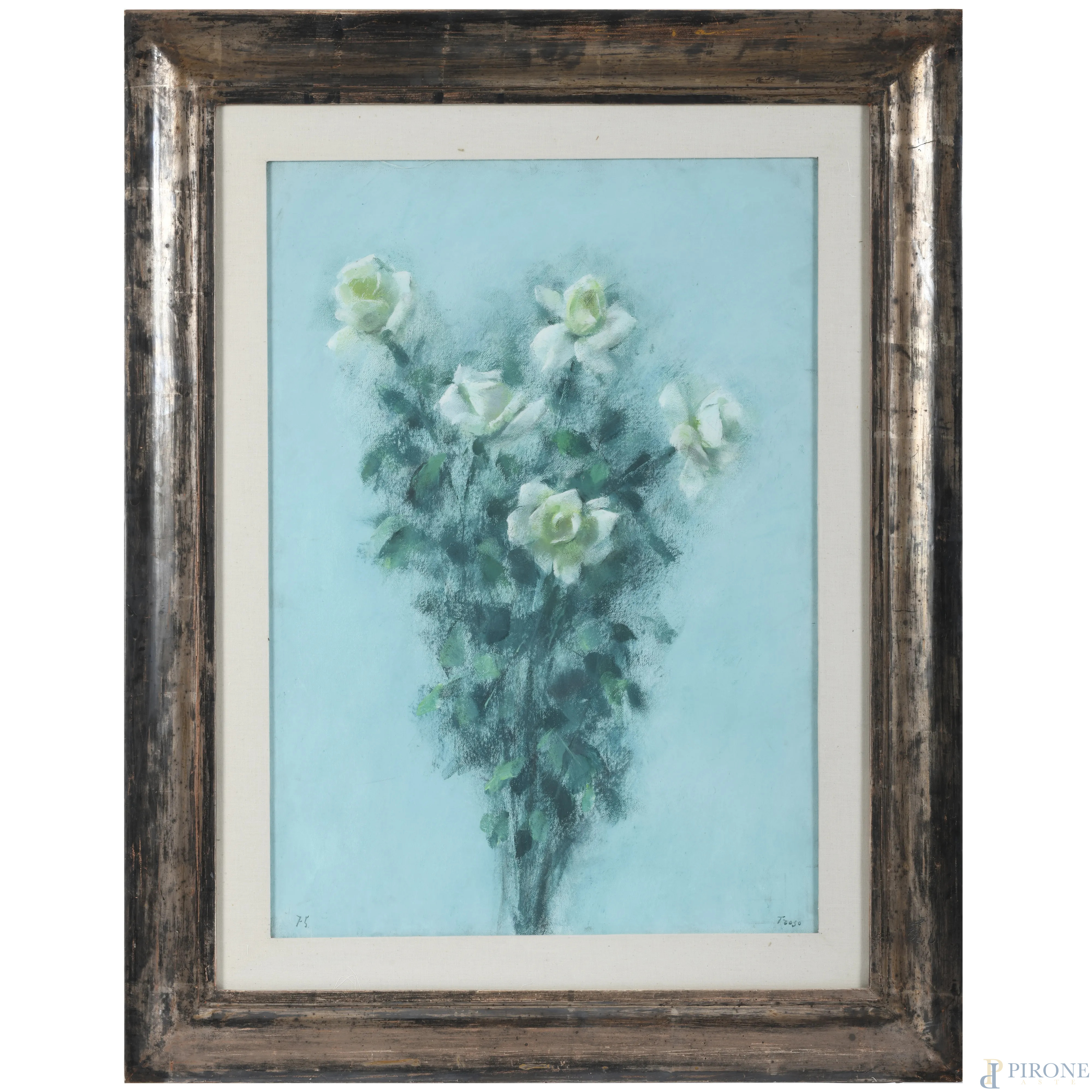 Fernando Troso (1910 – 1990), Rose bianche, olio su tela, cm 70x50, firmato in basso a destra e al retro per autentica, entro cornice