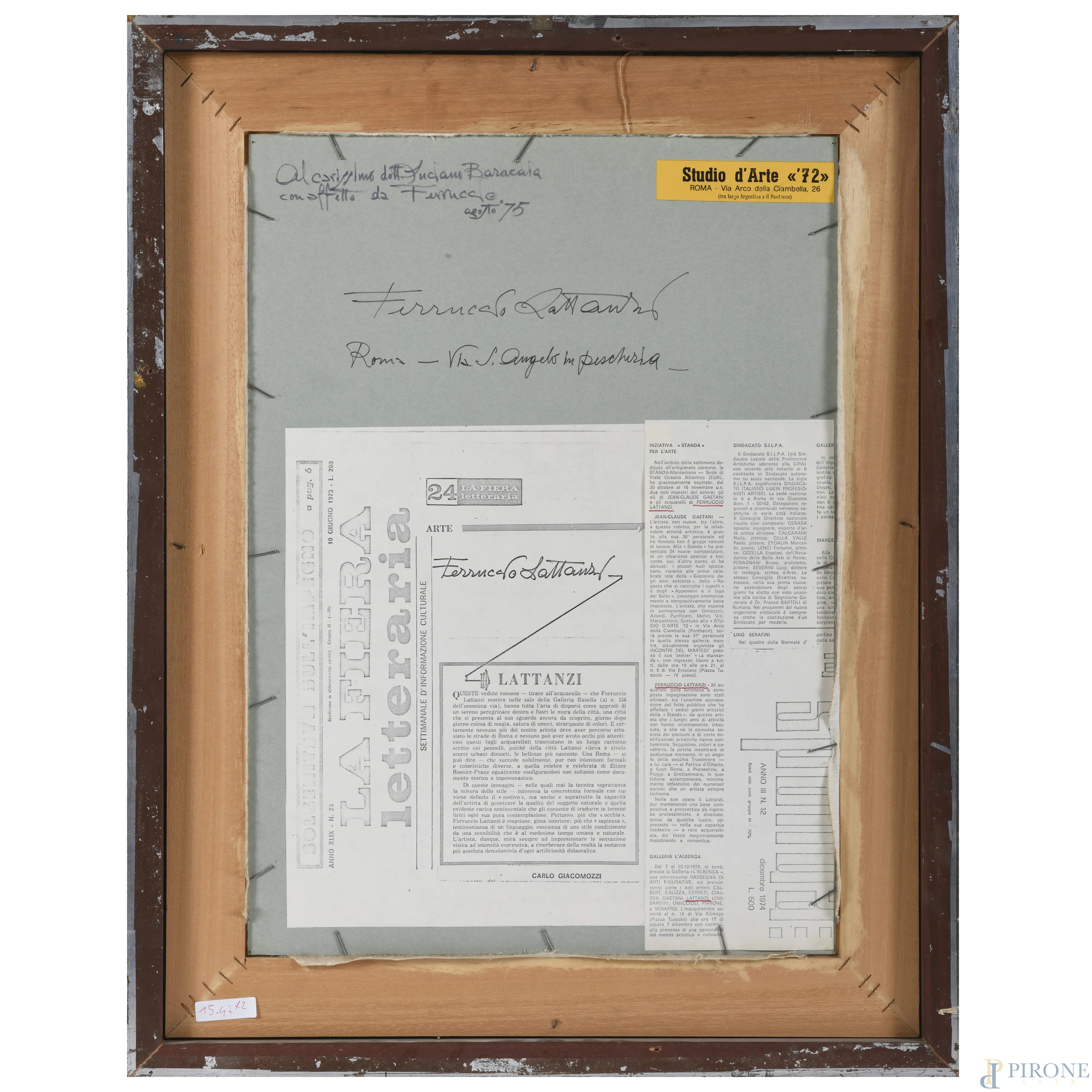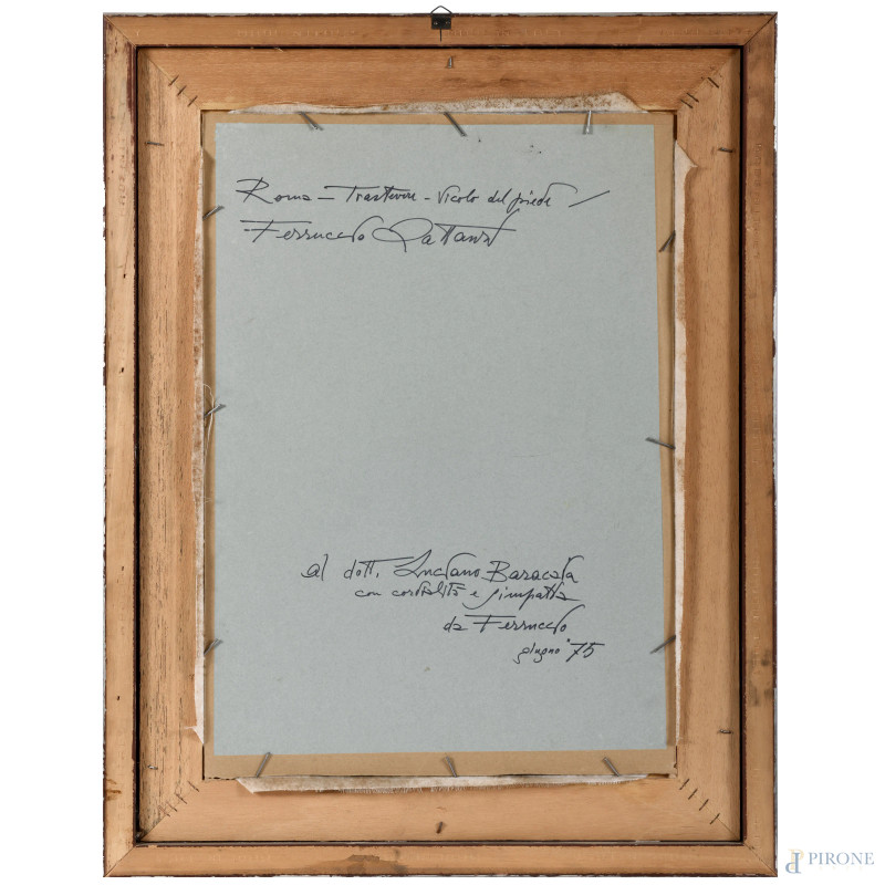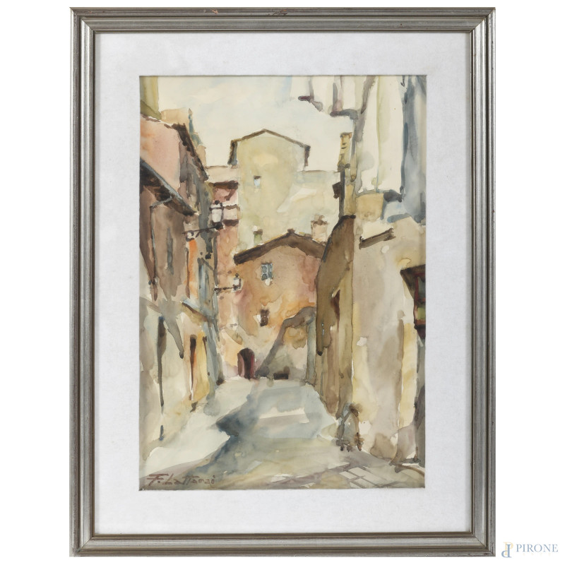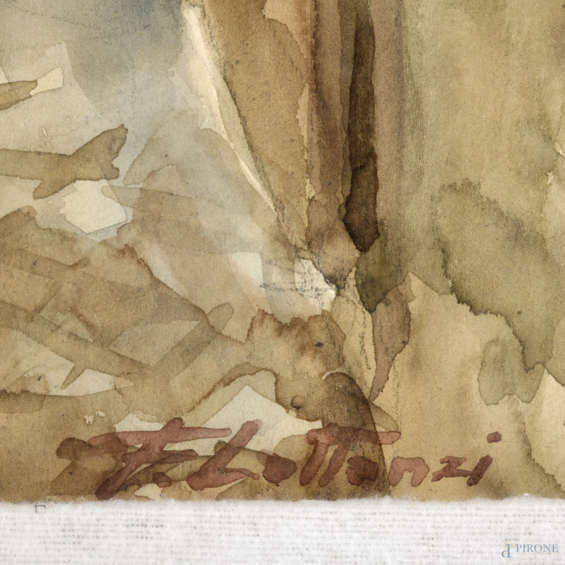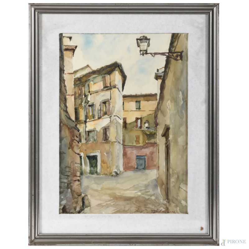 Ferruccio Lattanzi, Coppia di due scorci di vie di Roma, acquerello su carta, misure massime cm 50,5x36,5, firmati in basso, entro cornice, (lievi ondulazioni della carta)