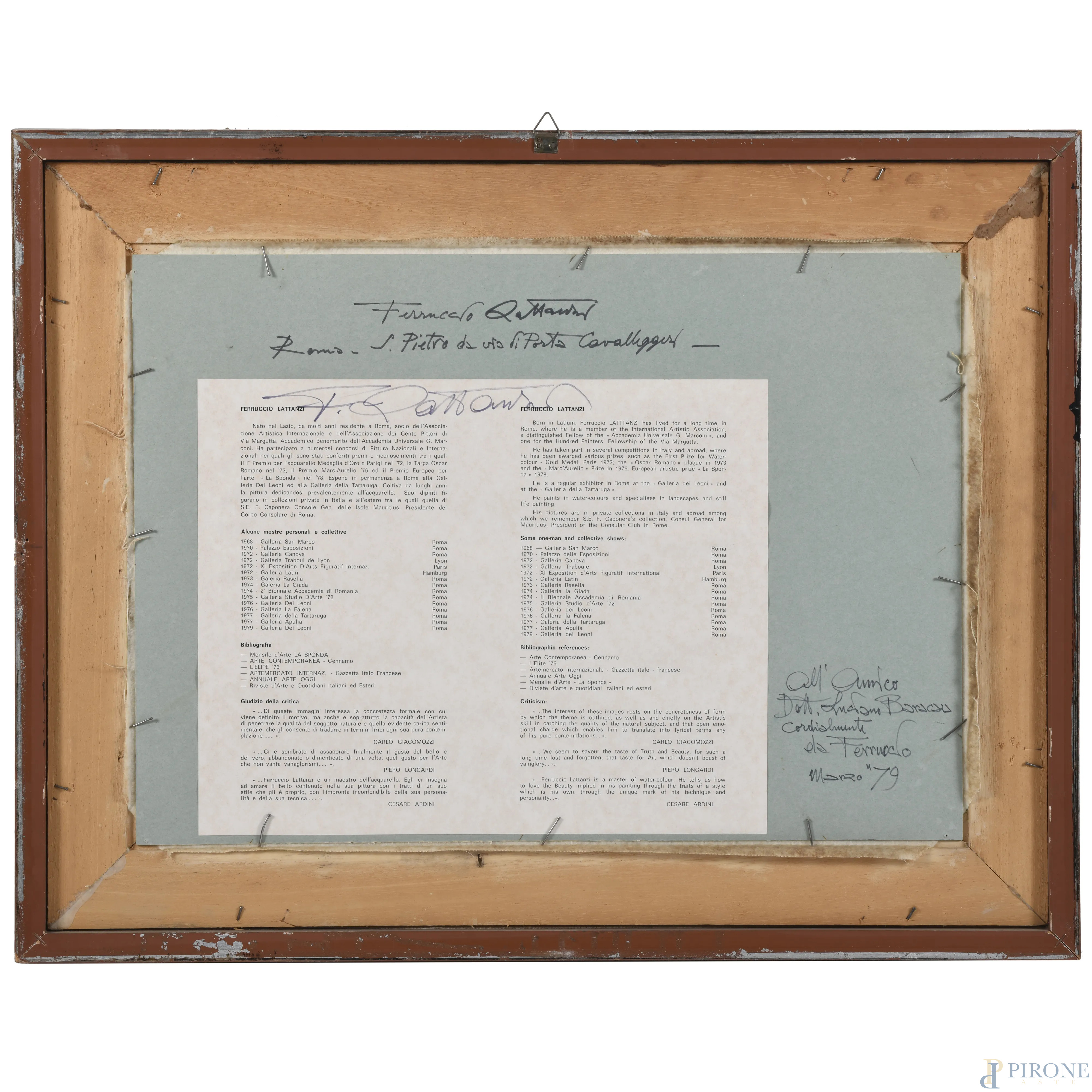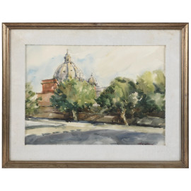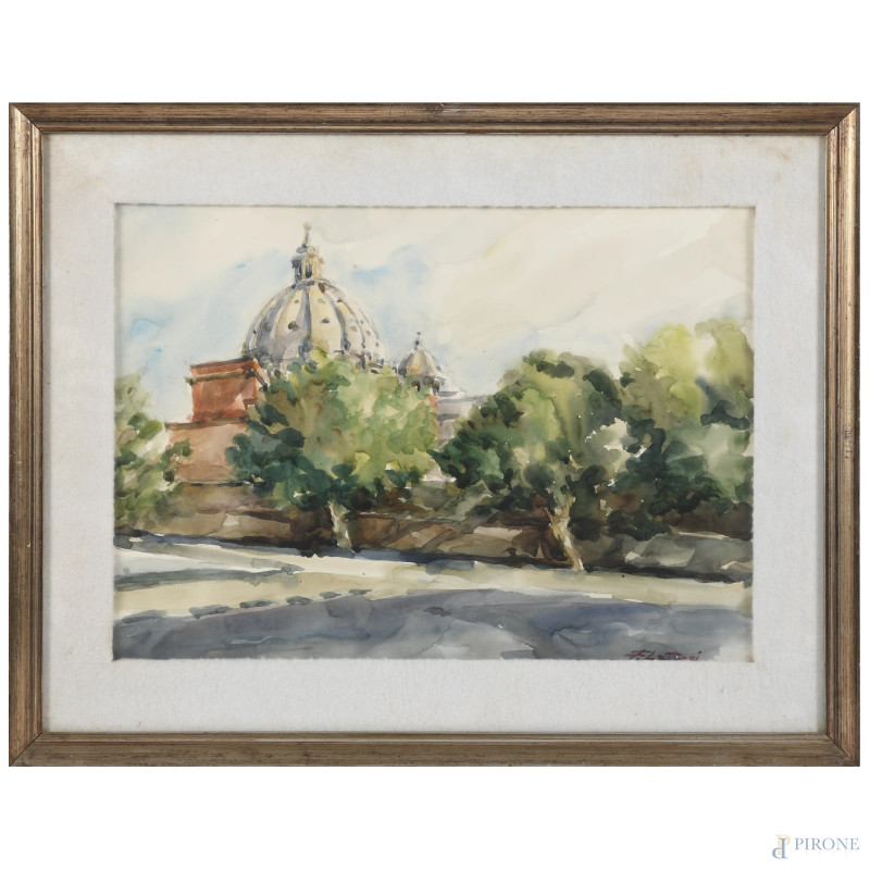 Ferruccio Lattanzi, Veduta di San Pietro, acquerello su carta, cm 37x51, firmato in basso a destra, entro cornice