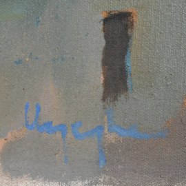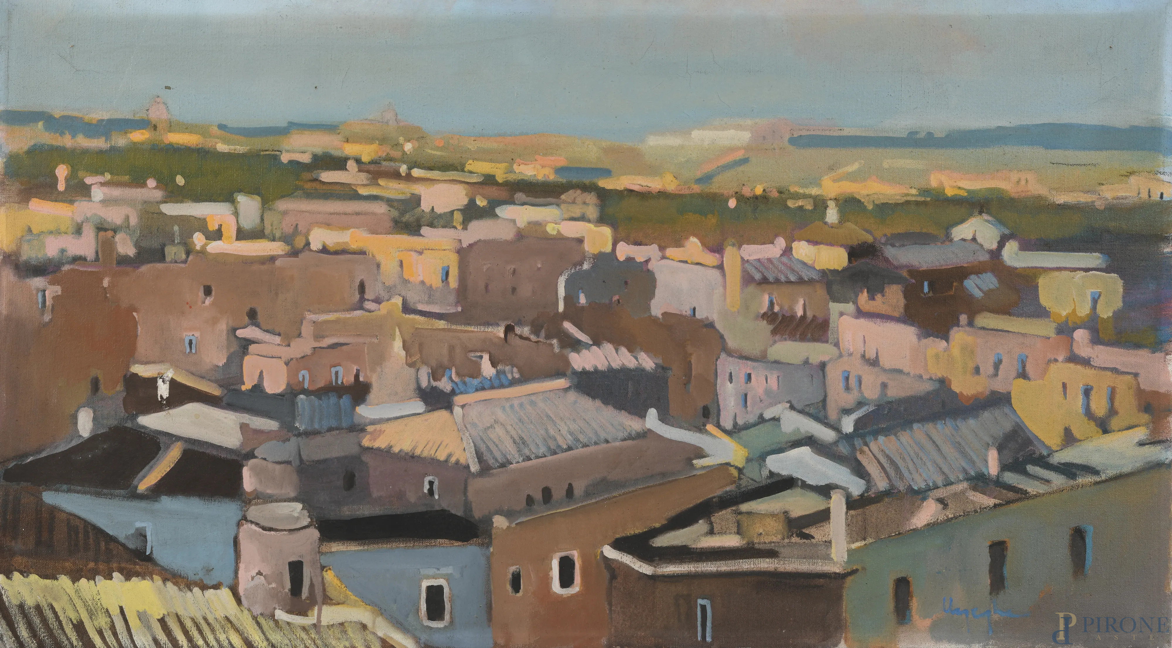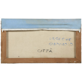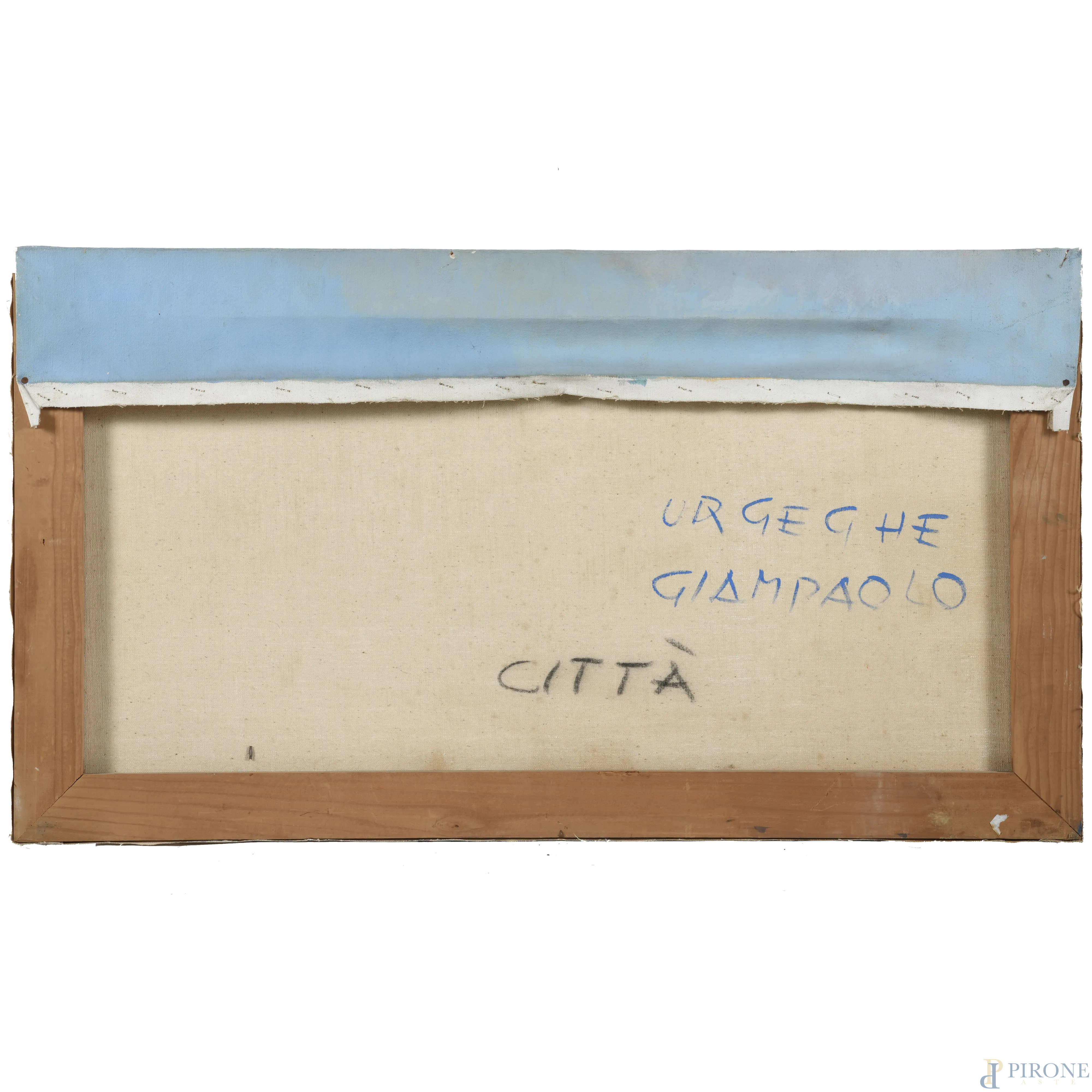Giampaolo Urgeghe (XX secolo), Città, olio su tela, cm 46x85,5, firmato in basso a destra