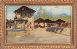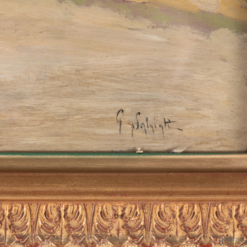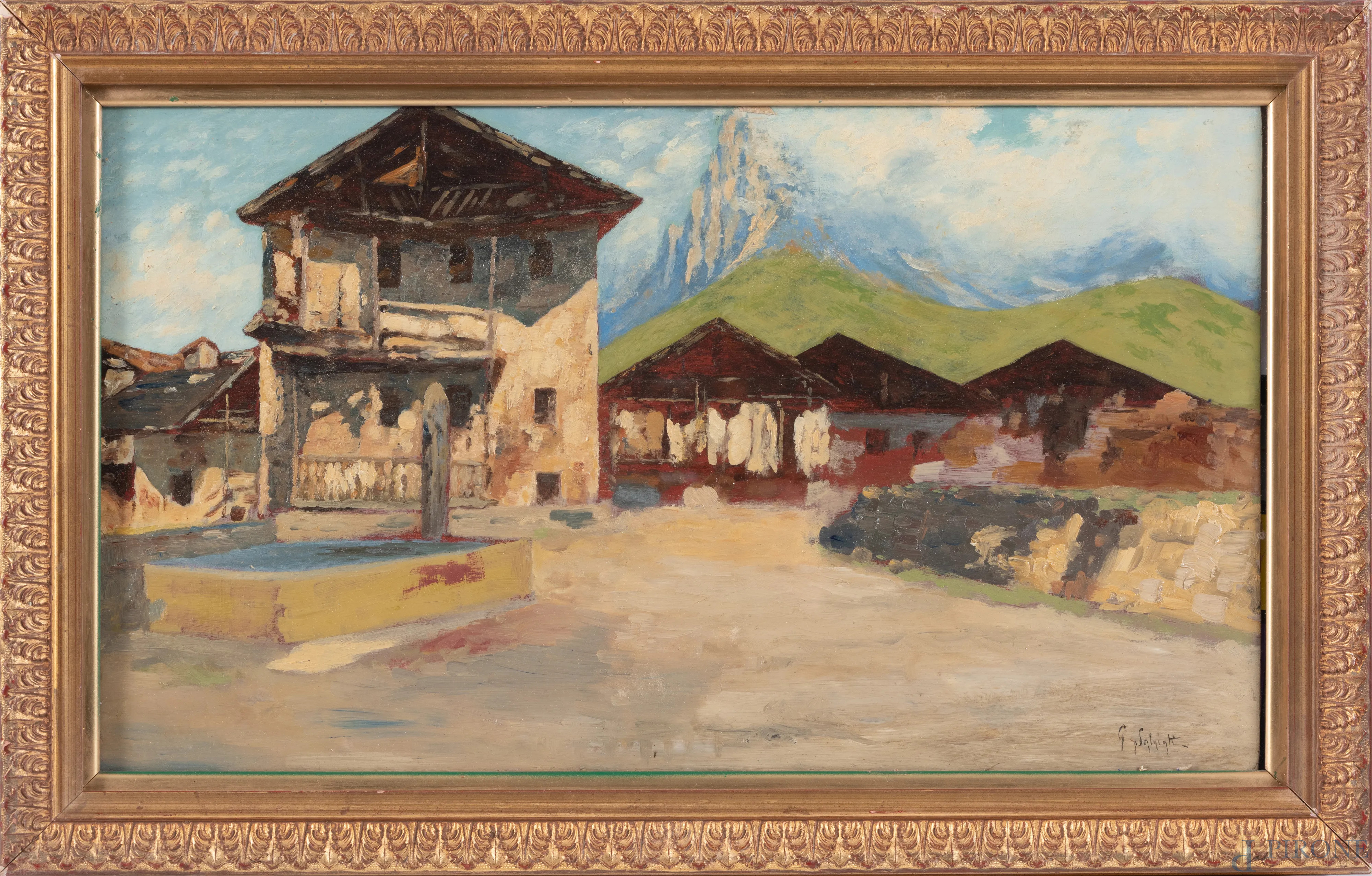 Giovanni Salviati (1881-1951), Paese montano, XX secolo, olio su tavoletta, cm 28x48, firmato in basso a destra, entro cornice