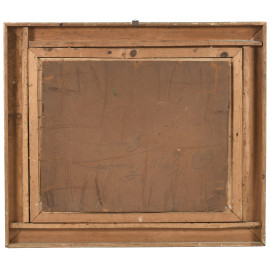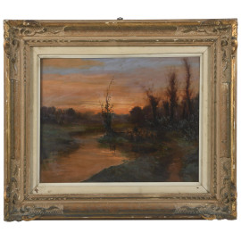 Gregge al tramonto, XX secolo, olio su cartone, cm 39x48, entro cornice, (lievi segni di usura, cartone imbarcato)