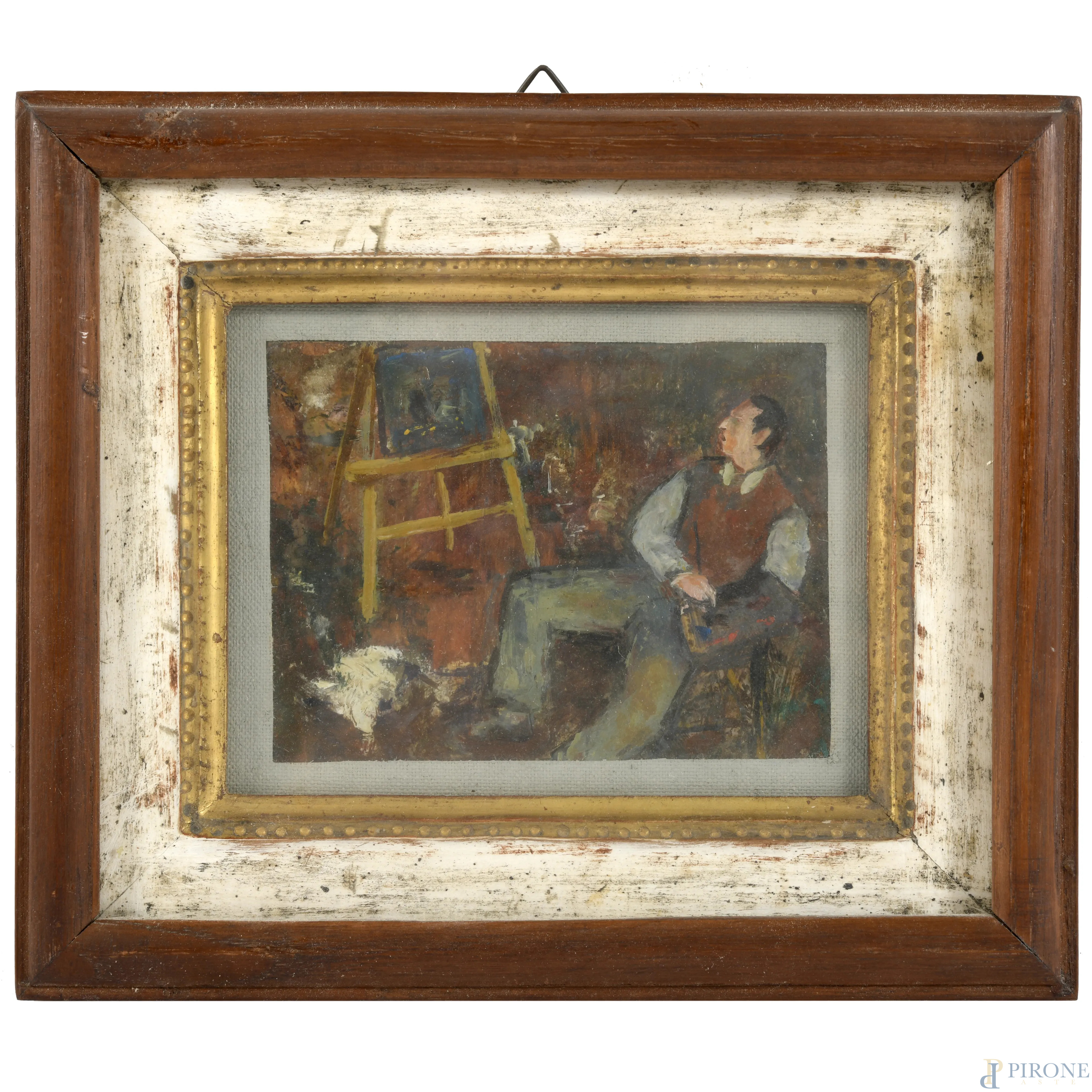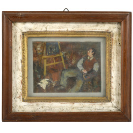 Guelfo Gherlinzoni (1906-1968), Autoritratto, olio su cartone, cm 8x10, entro cornice