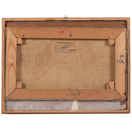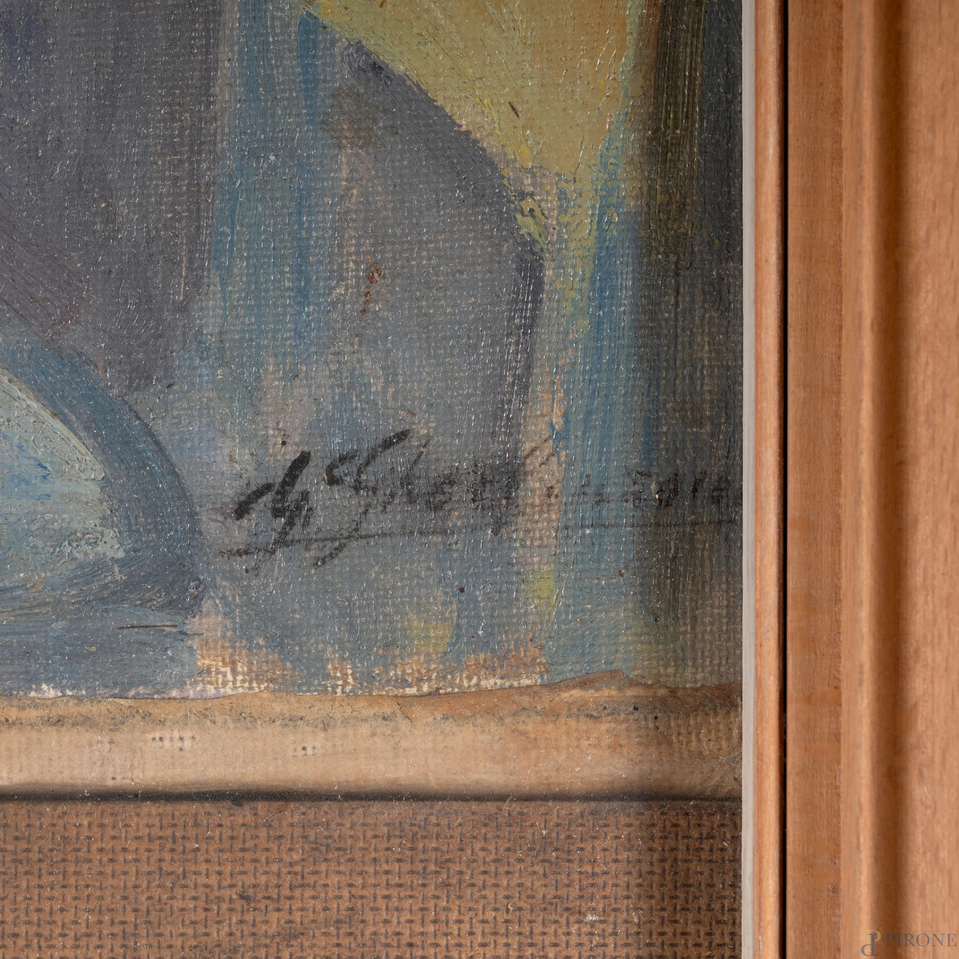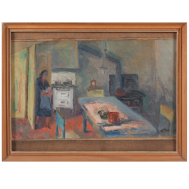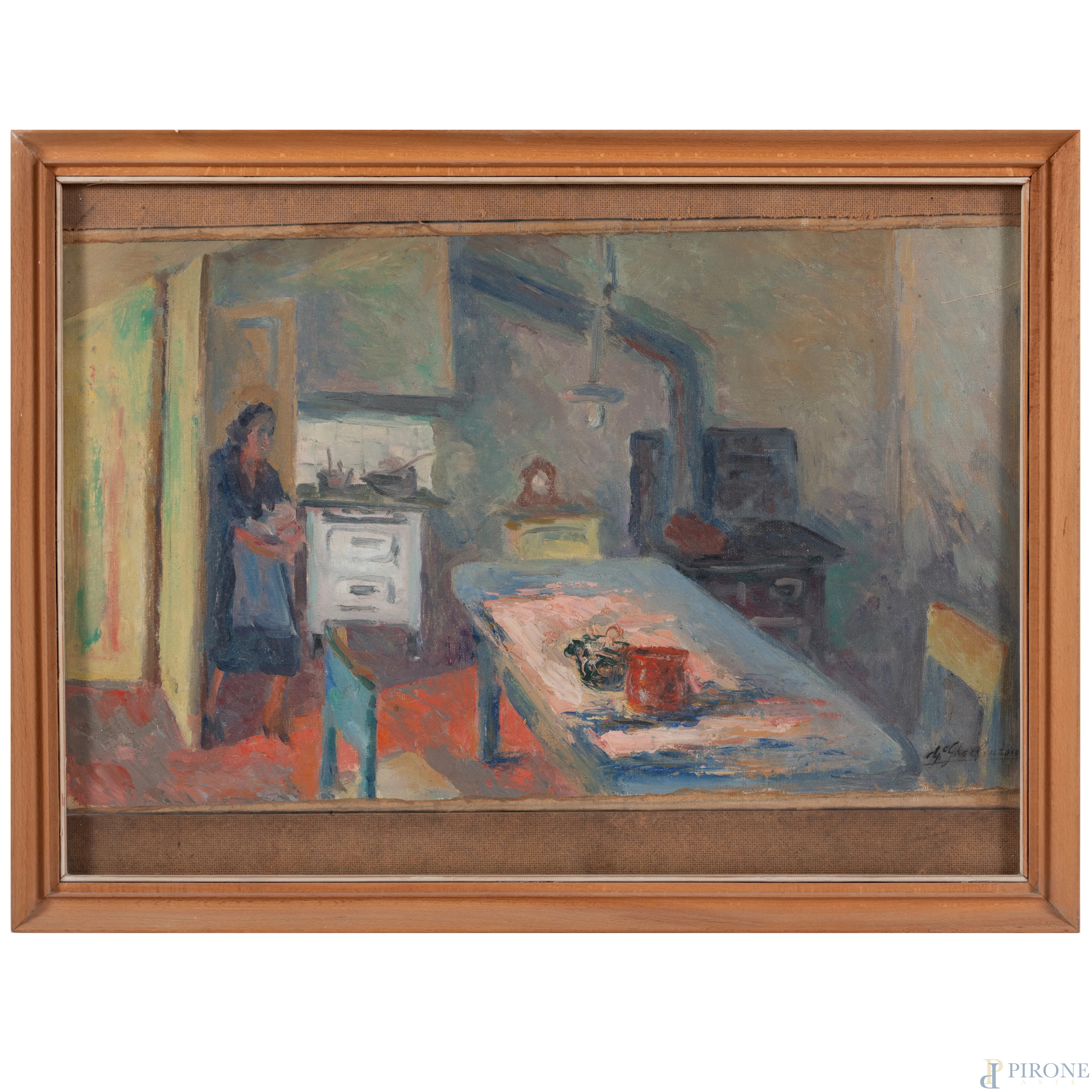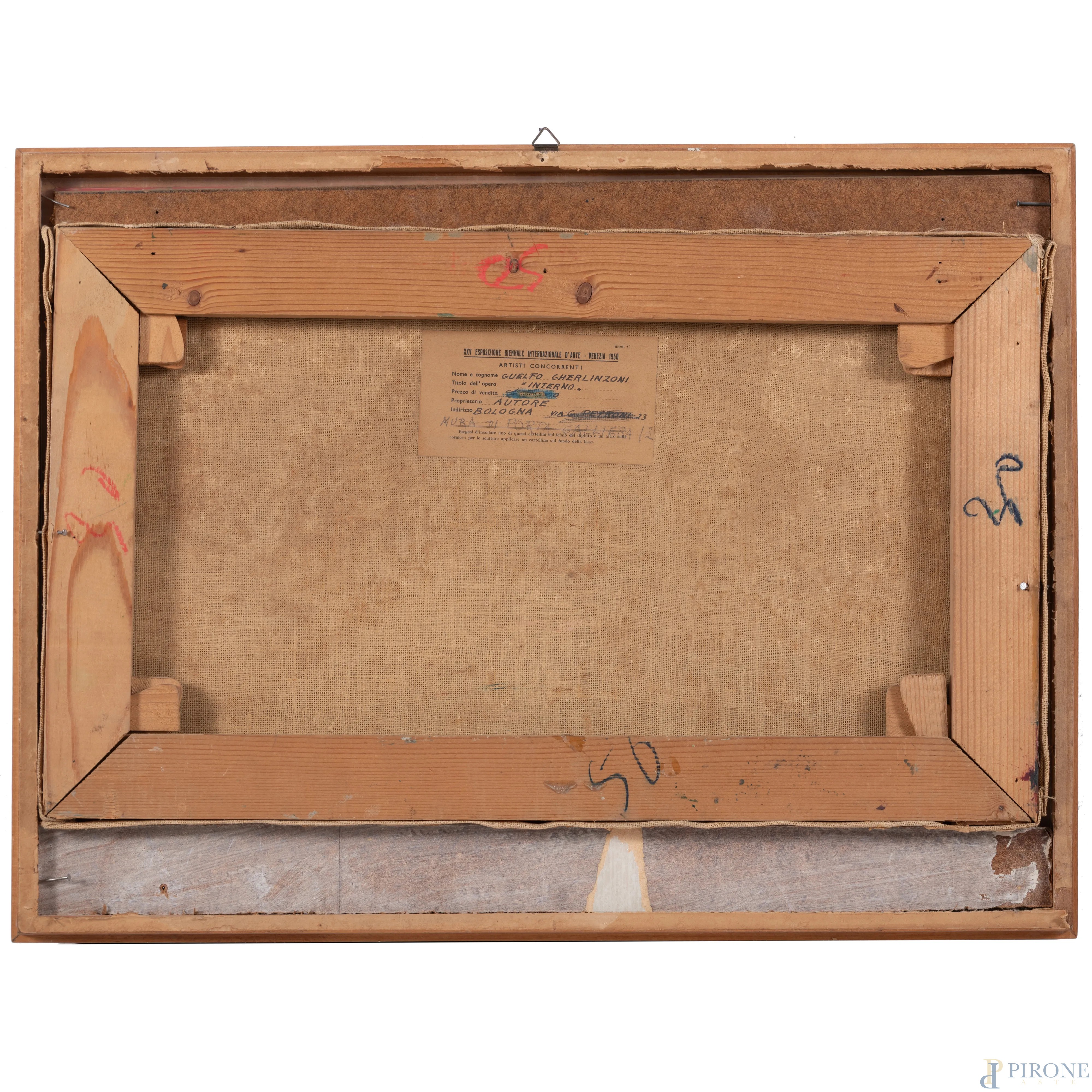 Guelfo Gherlinzoni (1906-1968), Interno olio su tela applicata su tela, cm 30x51, firmato in basso a destra, entro cornice