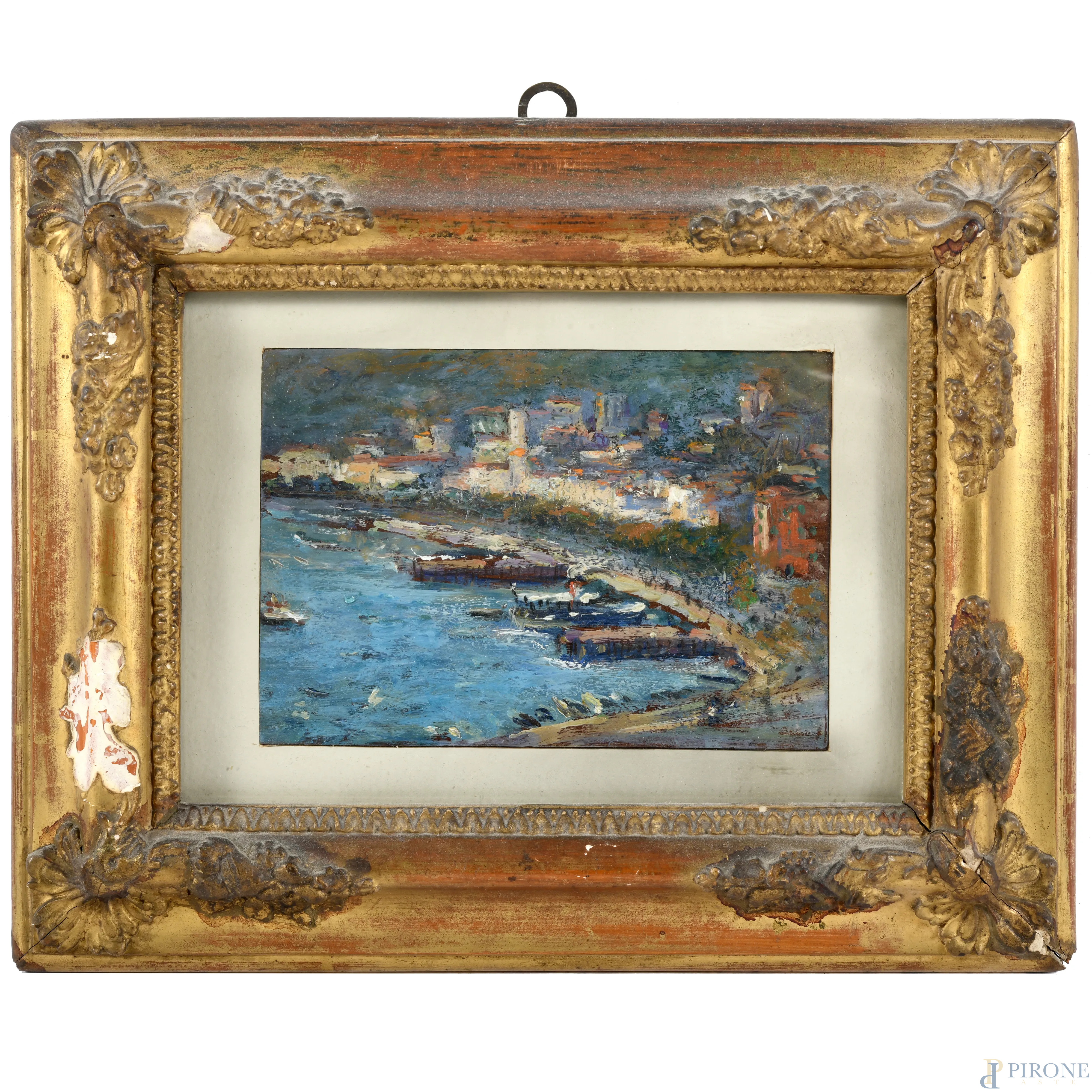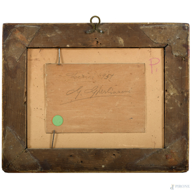 Guelfo Gherlinzoni (1906-1968), Lerici, olio su compensato, cm 10x14,5, , firmato e datato " Lerici 1951" al retro, entro cornice