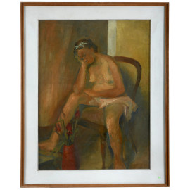 Guelfo Gherlinzoni (1906-1968), Nudo abbronzato, olio su tela, cm 85x65, firmato e titolato al retro, entro cornice