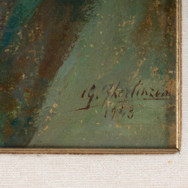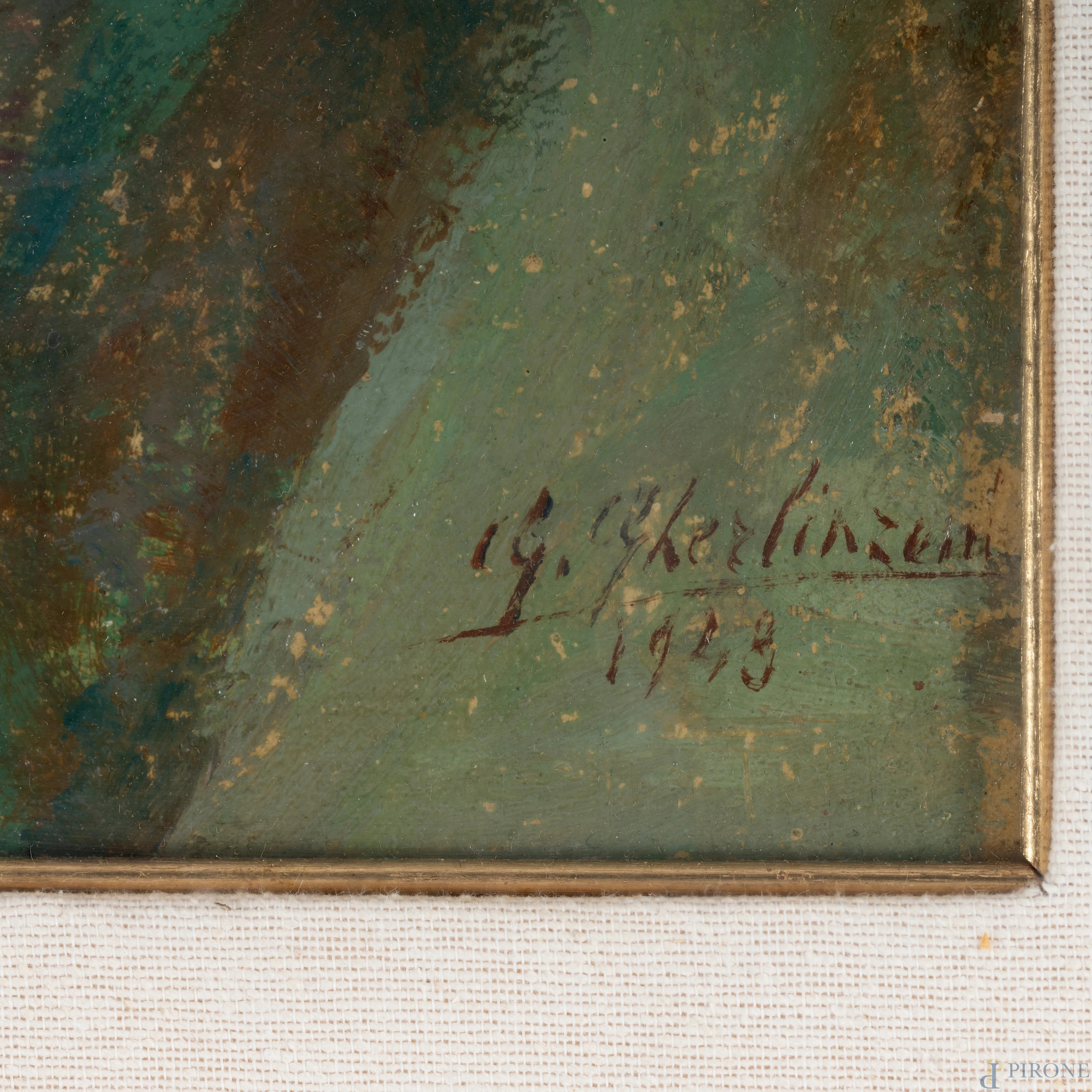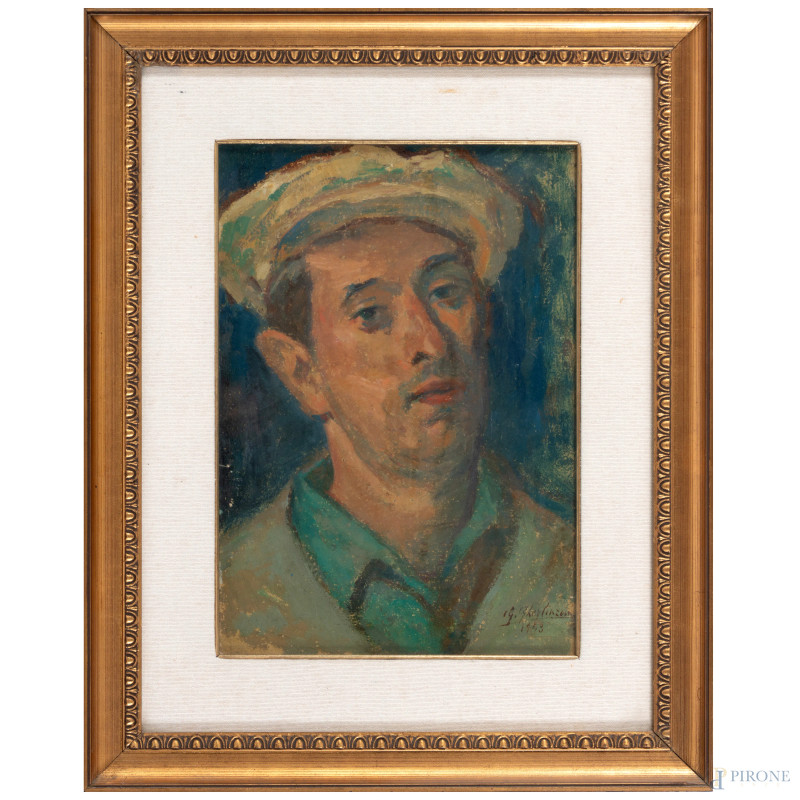 Guelfo Gherlinzoni (1906-1968), Ritratto, olio su cartone, cm 35x24, firmato e datato "1943" in basso a destra, entro cornice