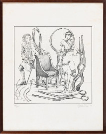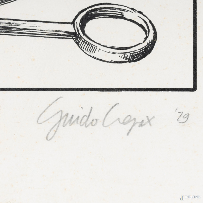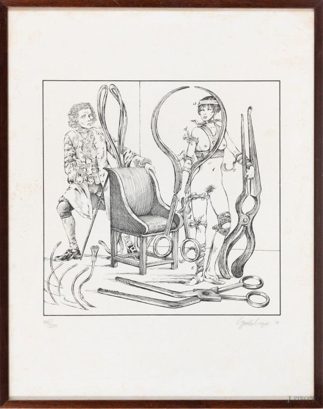 Guido Crepax, Valentina, litografia es 196/200, cm 63x49, firmato e datato "79" in basso a destra, (foxing, segni di piegatura, tracce di umidità)