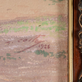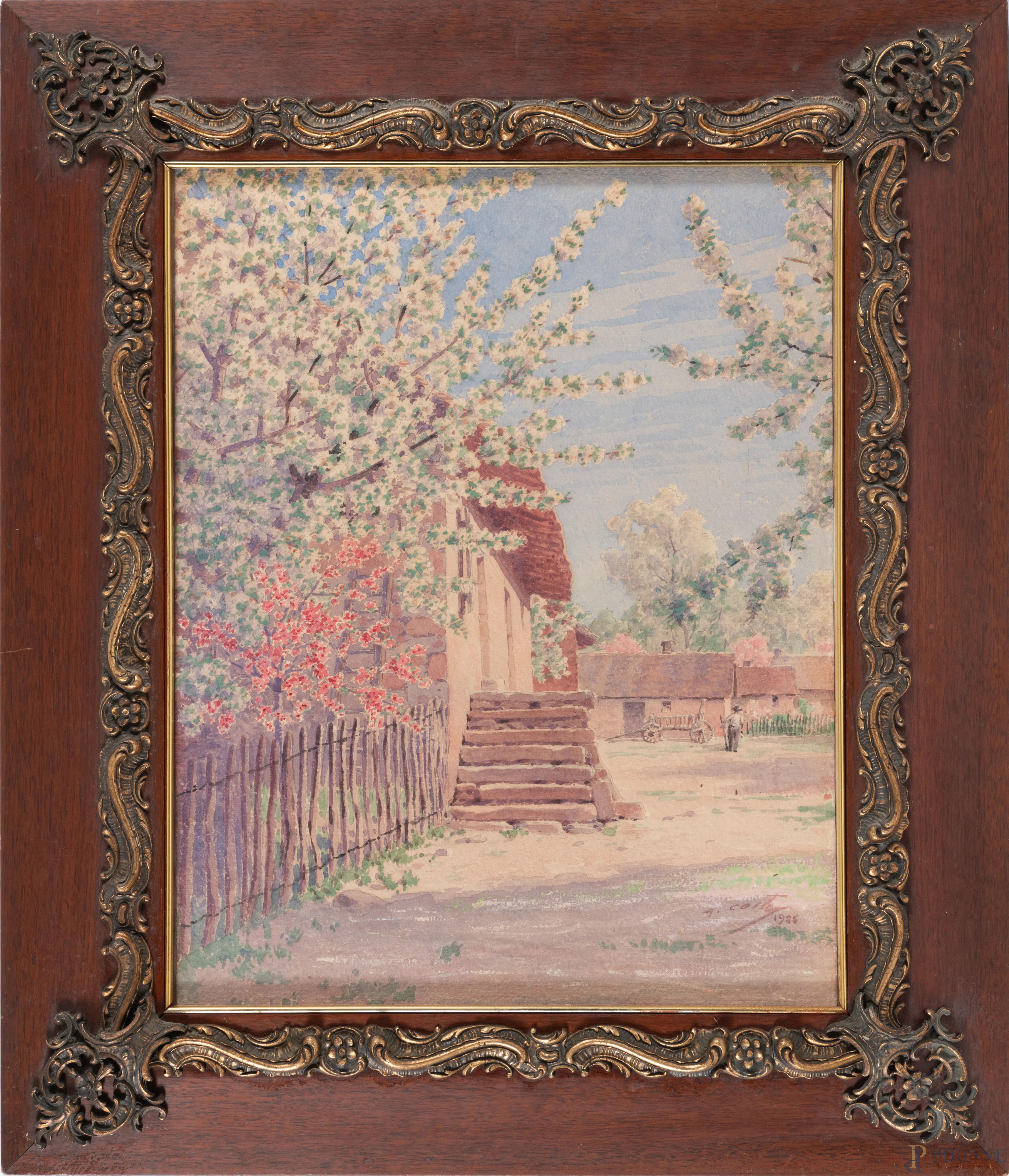 In primavera, acquerello su carta, cm 47x38, firmato e datato "1925" in basso a destra, entro cornice, (ondulazioni della carta