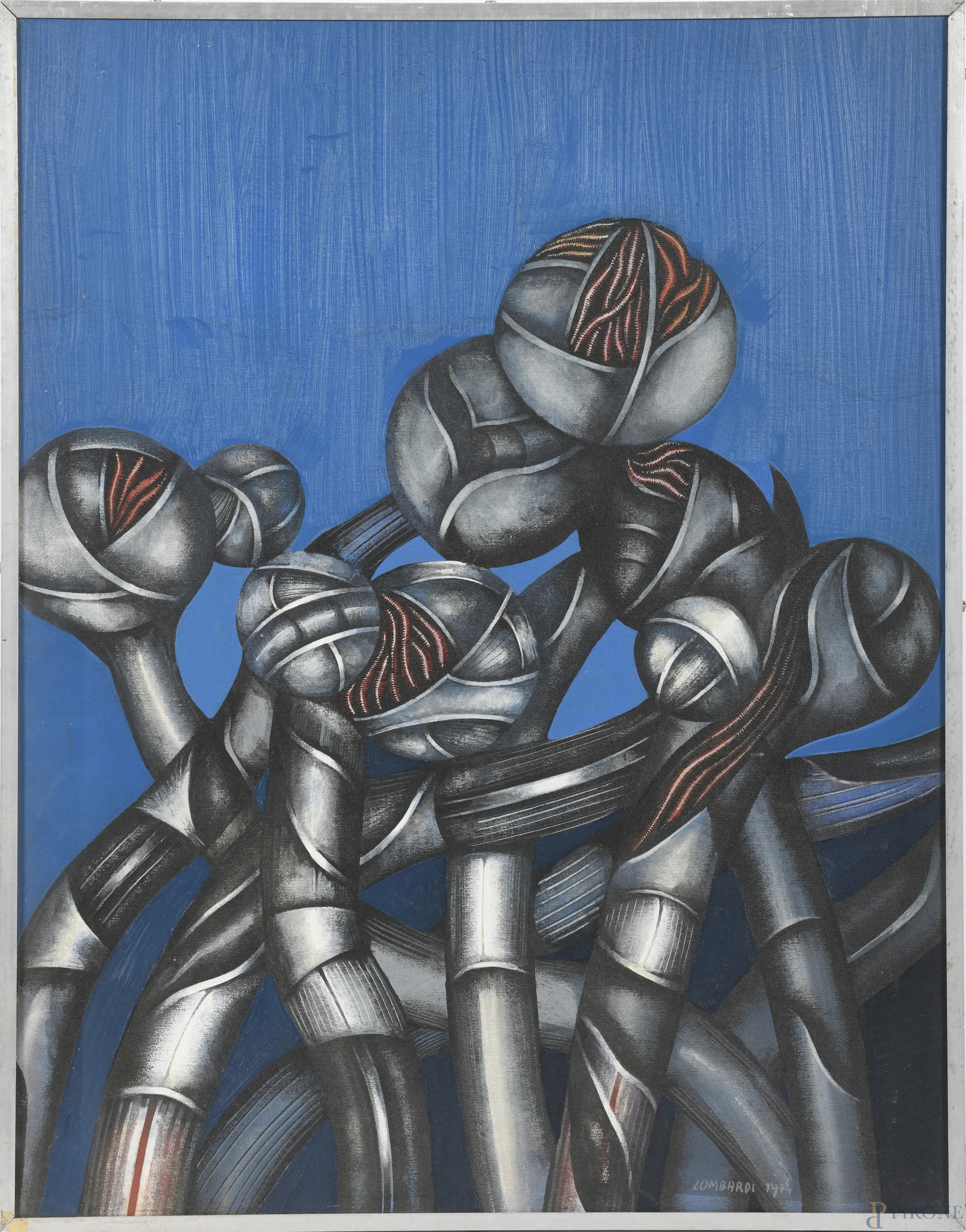 Ivo Lombardi, Fiori chiusi, acrilico su tela, cm 70x55, firmato e datato "1974" in basso a destra, entro cornice