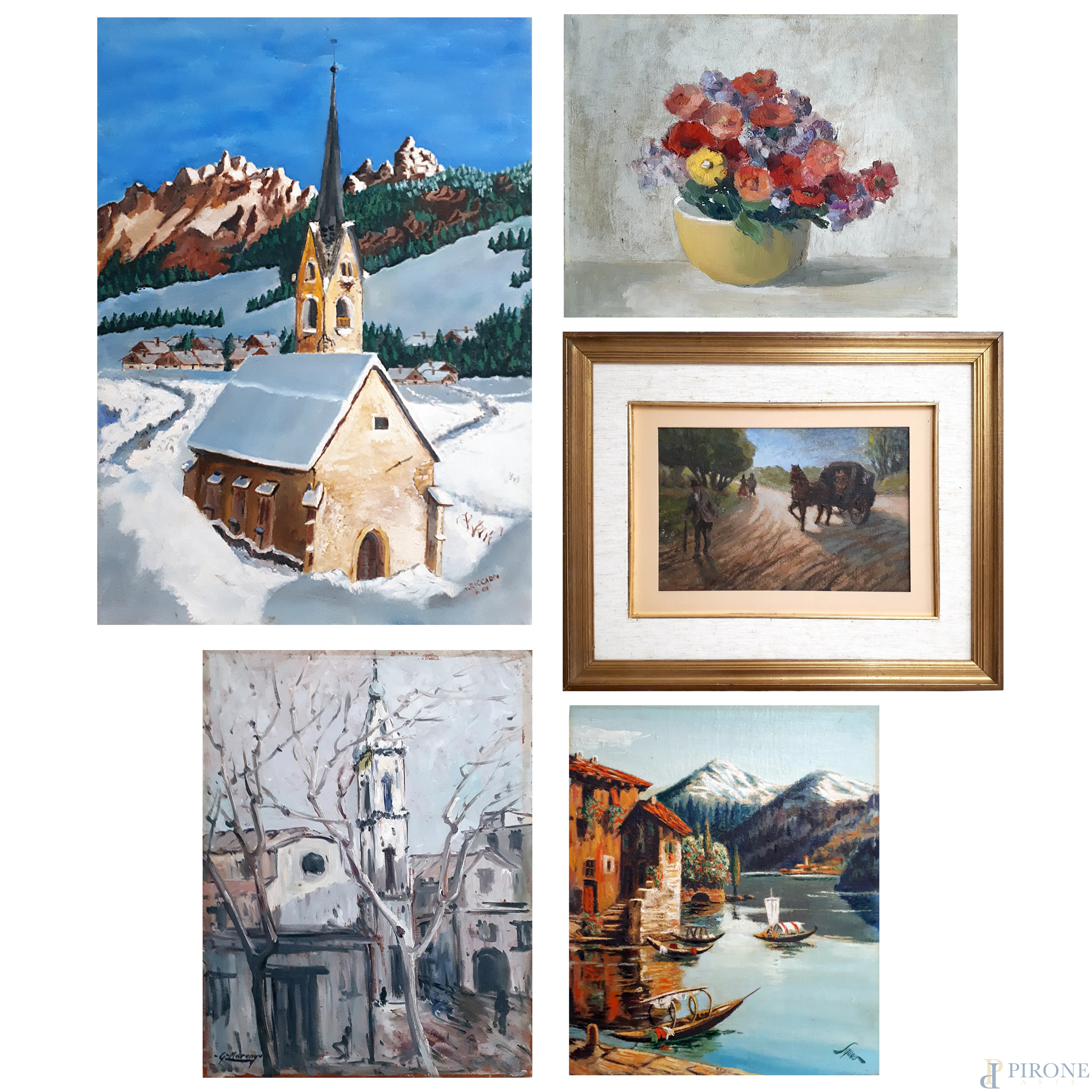 Lotto composto da 5 dipinti di varie epoche e dimensioni