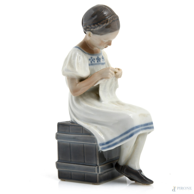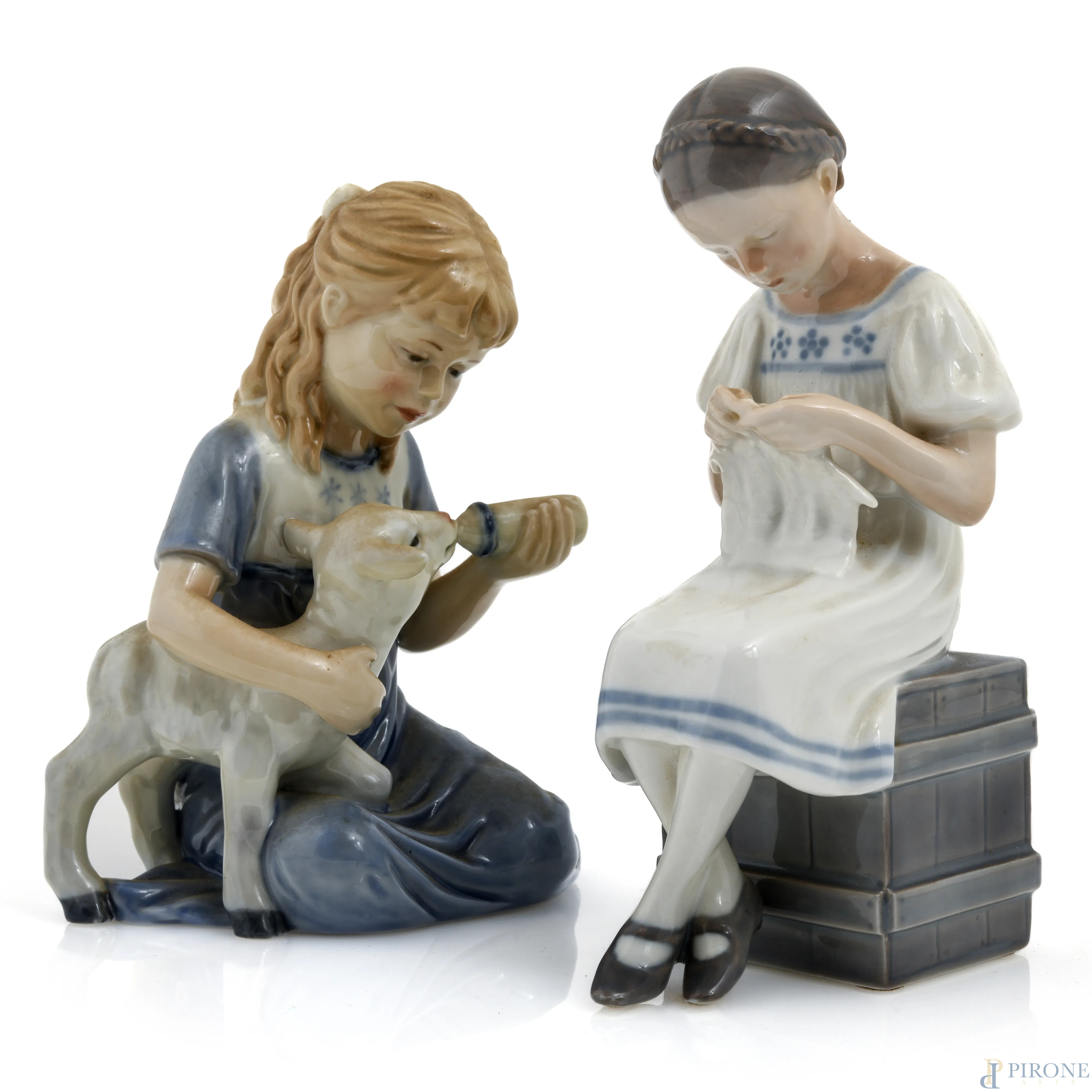 Lotto composto da due sculture di fanciulle in porcellana Royal Copenaghen, XX secolo, altezza massima cm 17
