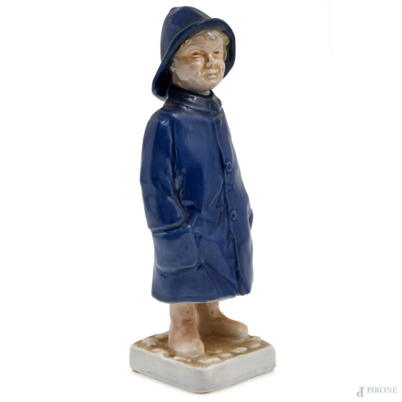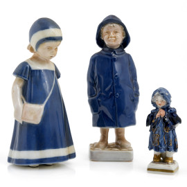 Lotto composto da due sculture di fanciulli in porcellana danese B&G e una piccola scultura di bambina in porcellana Capodimonte, XX secolo, altezza massima cm 19, (piccoli difetti)